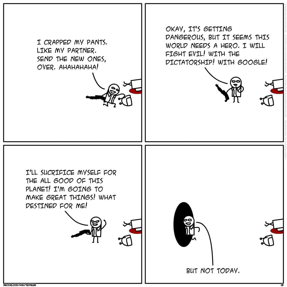 Head Held High: Traveler is a Sci-Fi graphic novel about Travis - time traveler and parallel universe jumper by the man behind the NECjAR. Created by Airat Asadullin. Character design by Airat Asadullin. Copyright 2011 NECjAR, all right reserved. See www.necjar.com for details.
