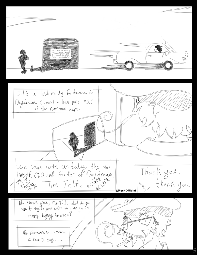 “The Daydream Corporation would like to thank the American people for allowing us to pay 95% of the national debt. And remember, if you see an unauthorized person or persons using a Blessing, please report then to your local Daydream Ambassador.”