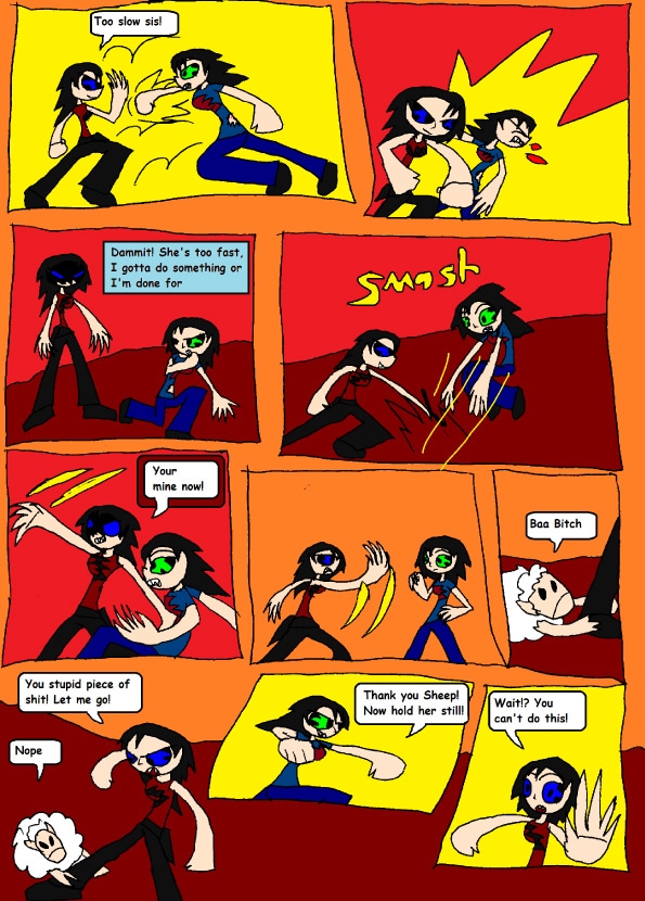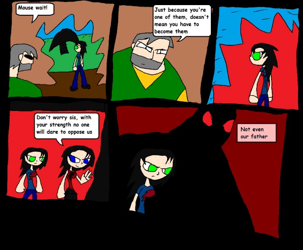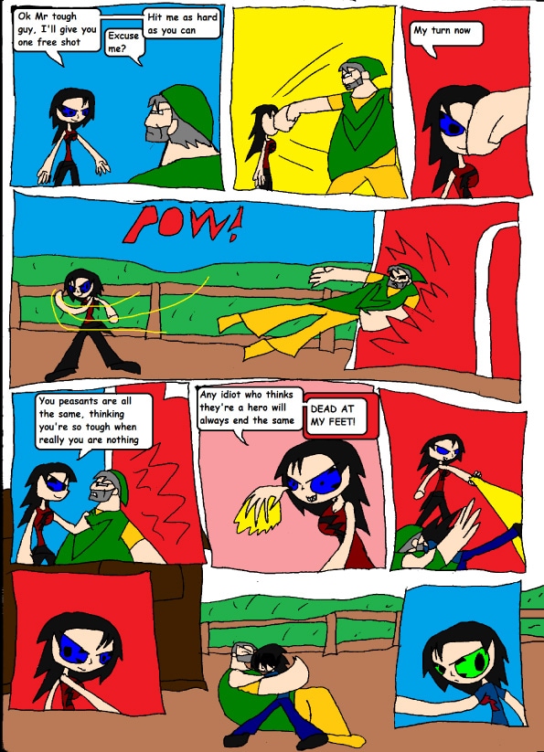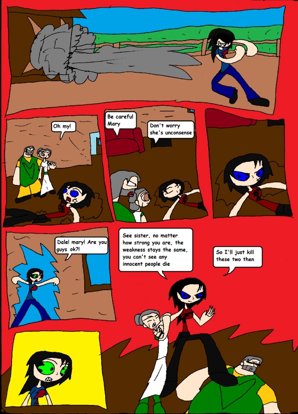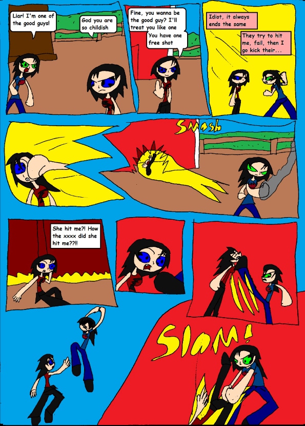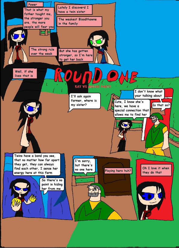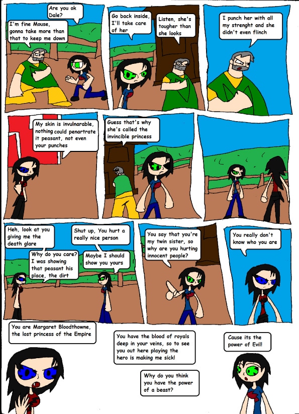 "I can't believe I have an evil twin, and she is as strong as me, if I don't beat her, she will hurt the nice farmer"