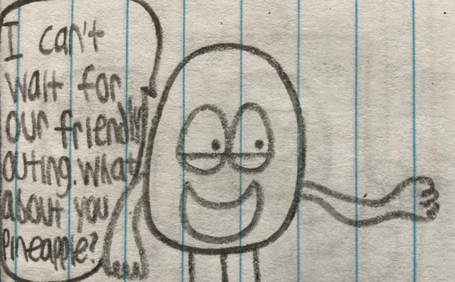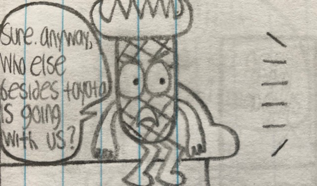Orange and Pineapple prepare to have a fun day out in the city with Toyota, Stephanie, and Zarik. Particularly, Zarik is on Pineapple's mind.