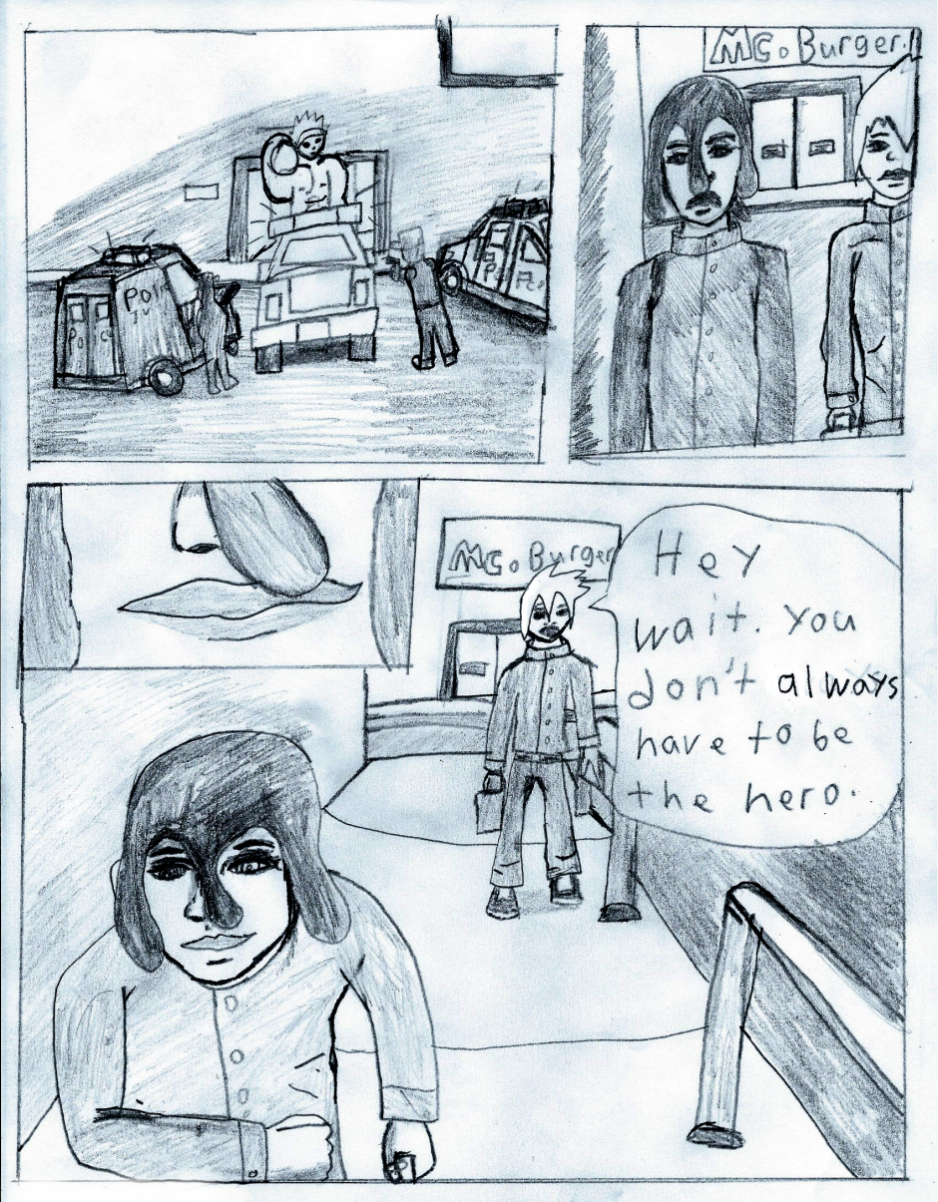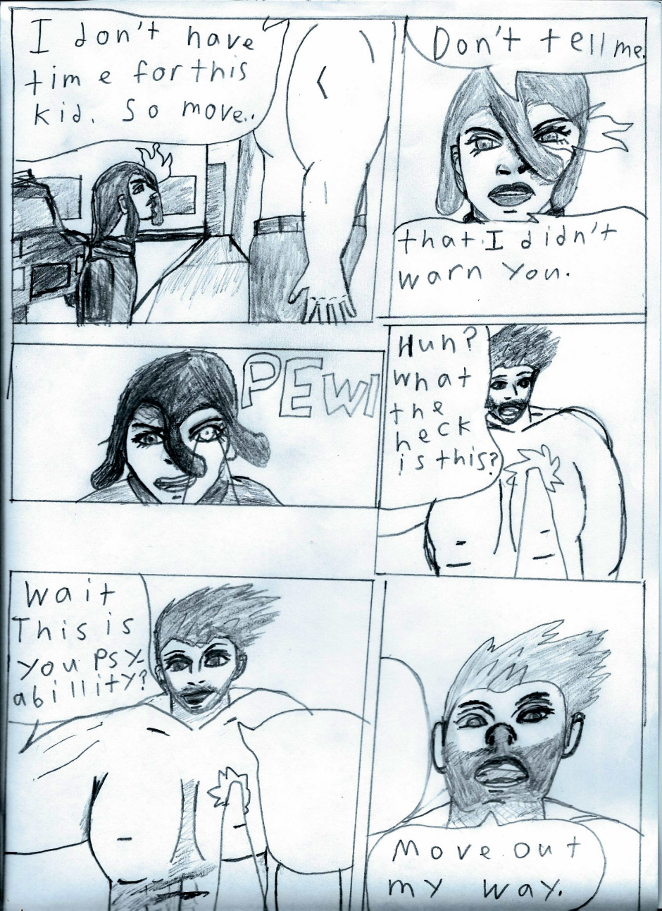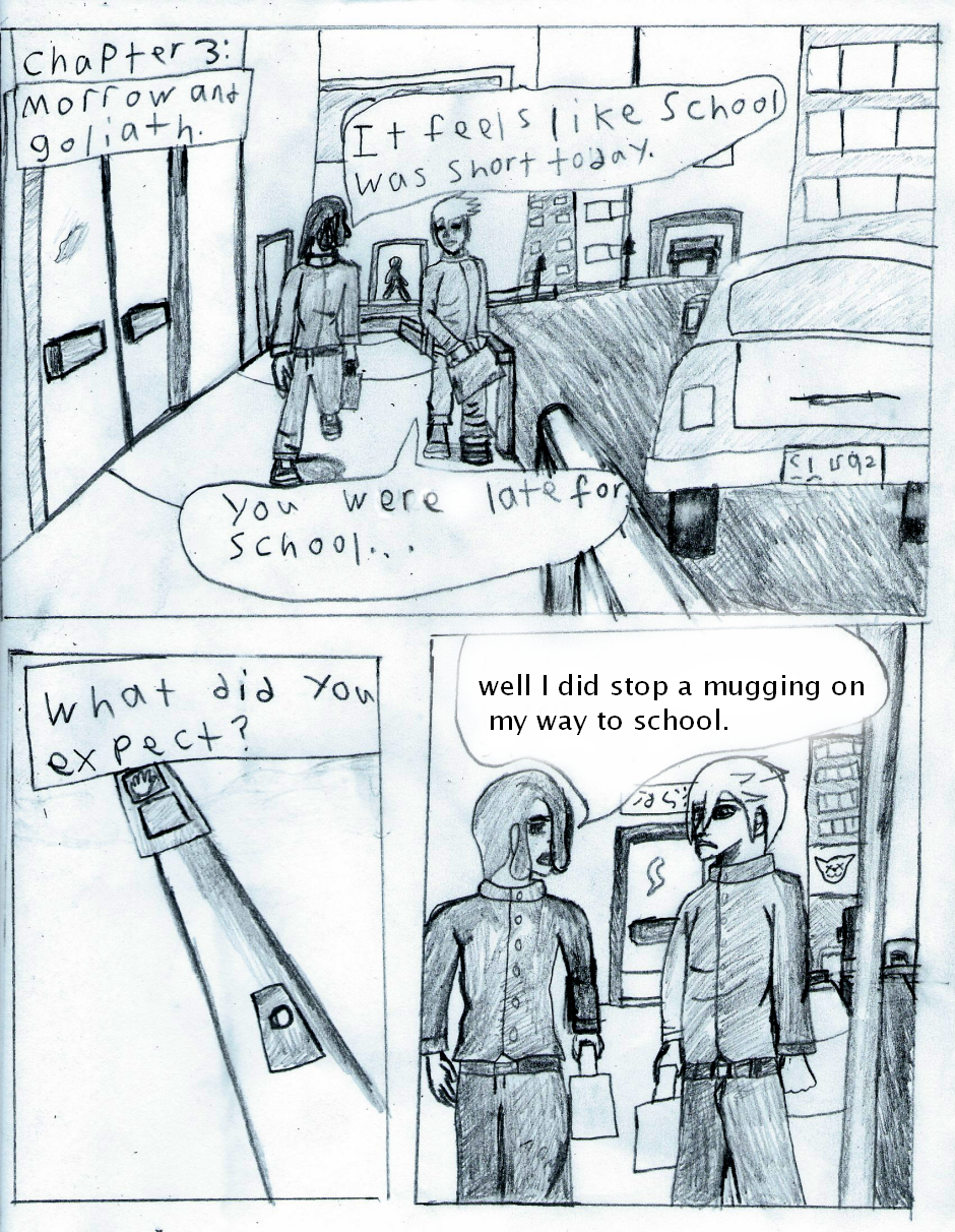 morrow always want to be the hero.but when a big man with muscles steal equipment form a lab.it's up to morrow to stop him. (i might redo all of the first half ones im down with the full book.)