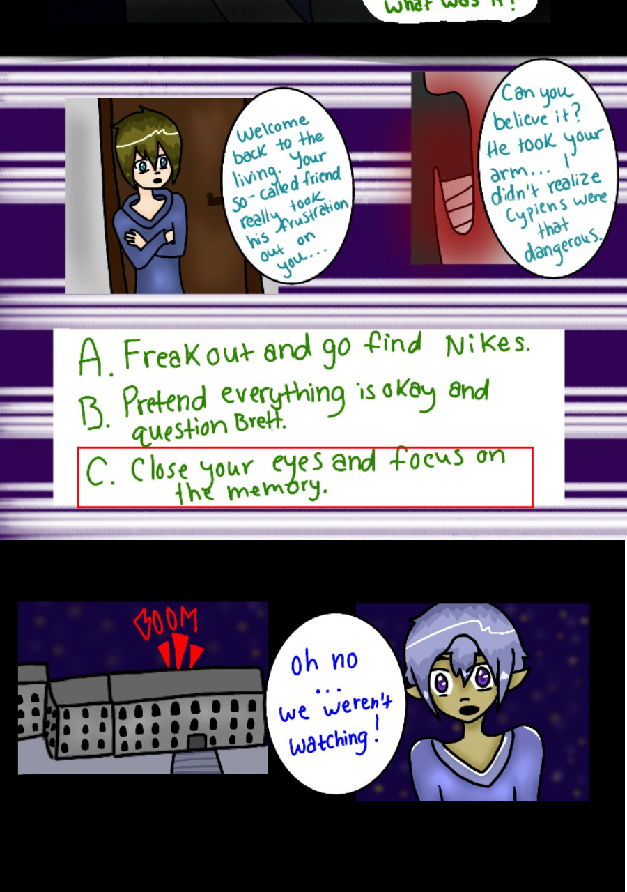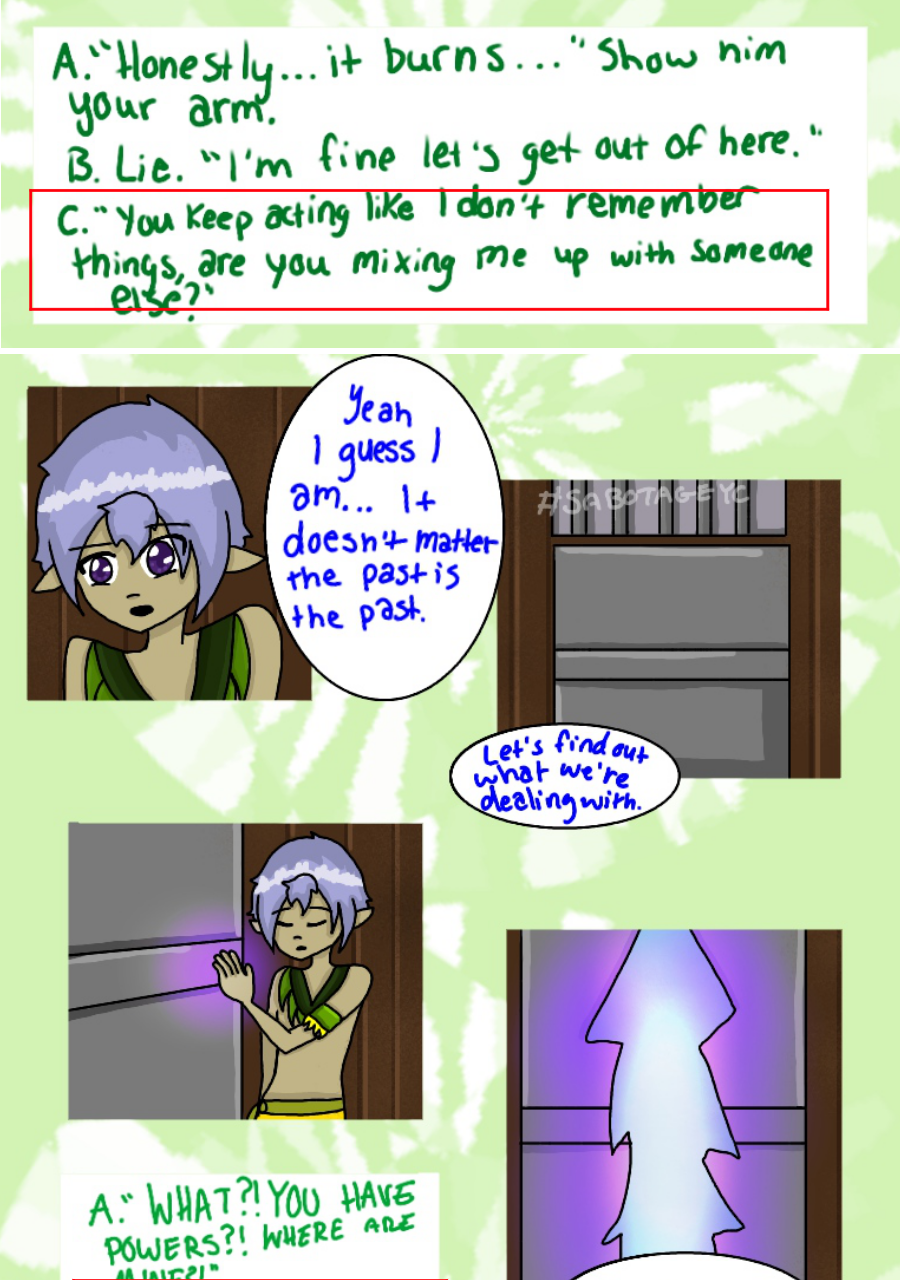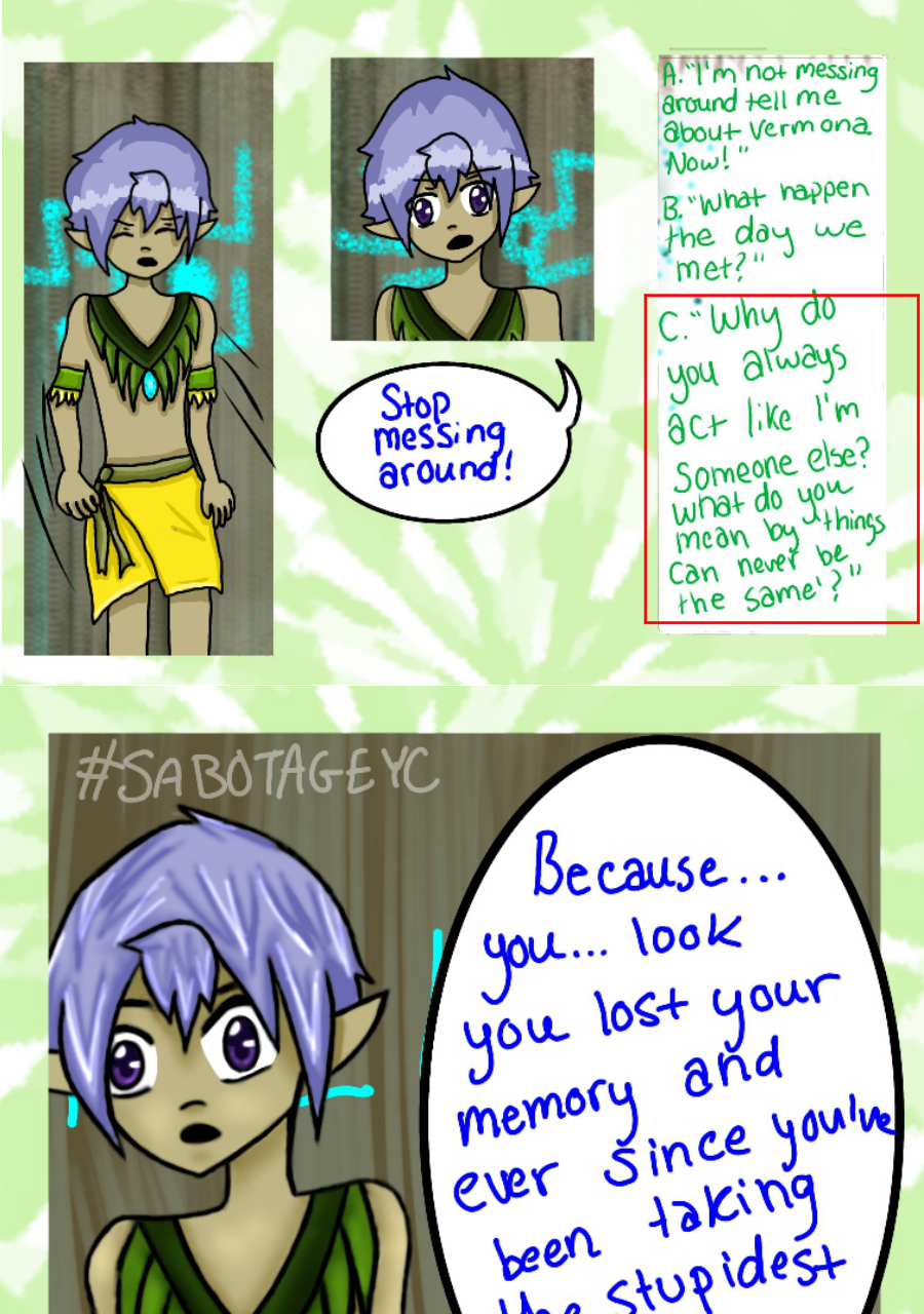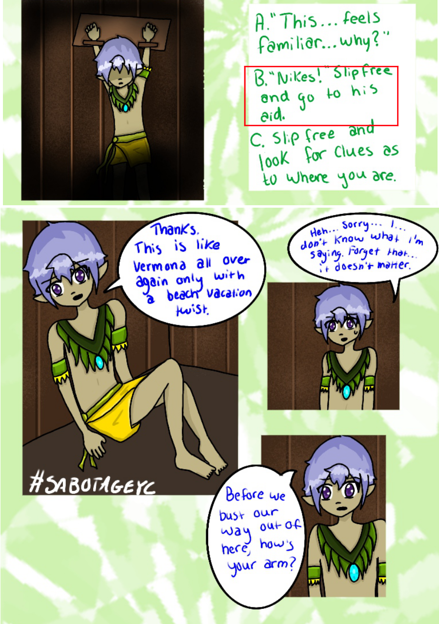 Continuation of a comic known as SabotageYC, previously known to be a 'choose your own adventure' comic on the site Paigeeworld, which has since shut down, but now has turned into a normal comic. These pages are placed here for readers to continue reading this comic as well view the beginning.