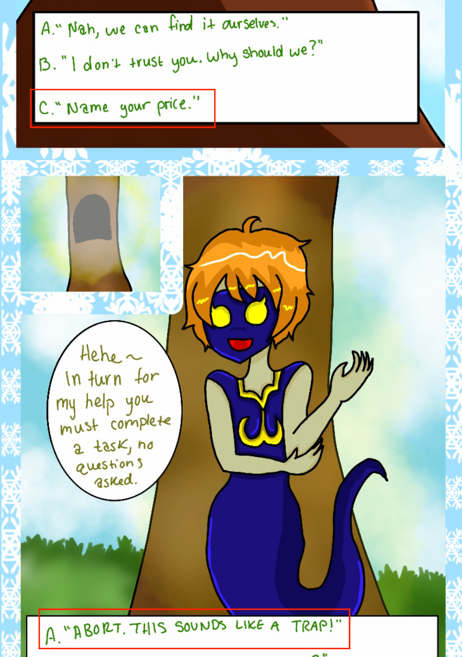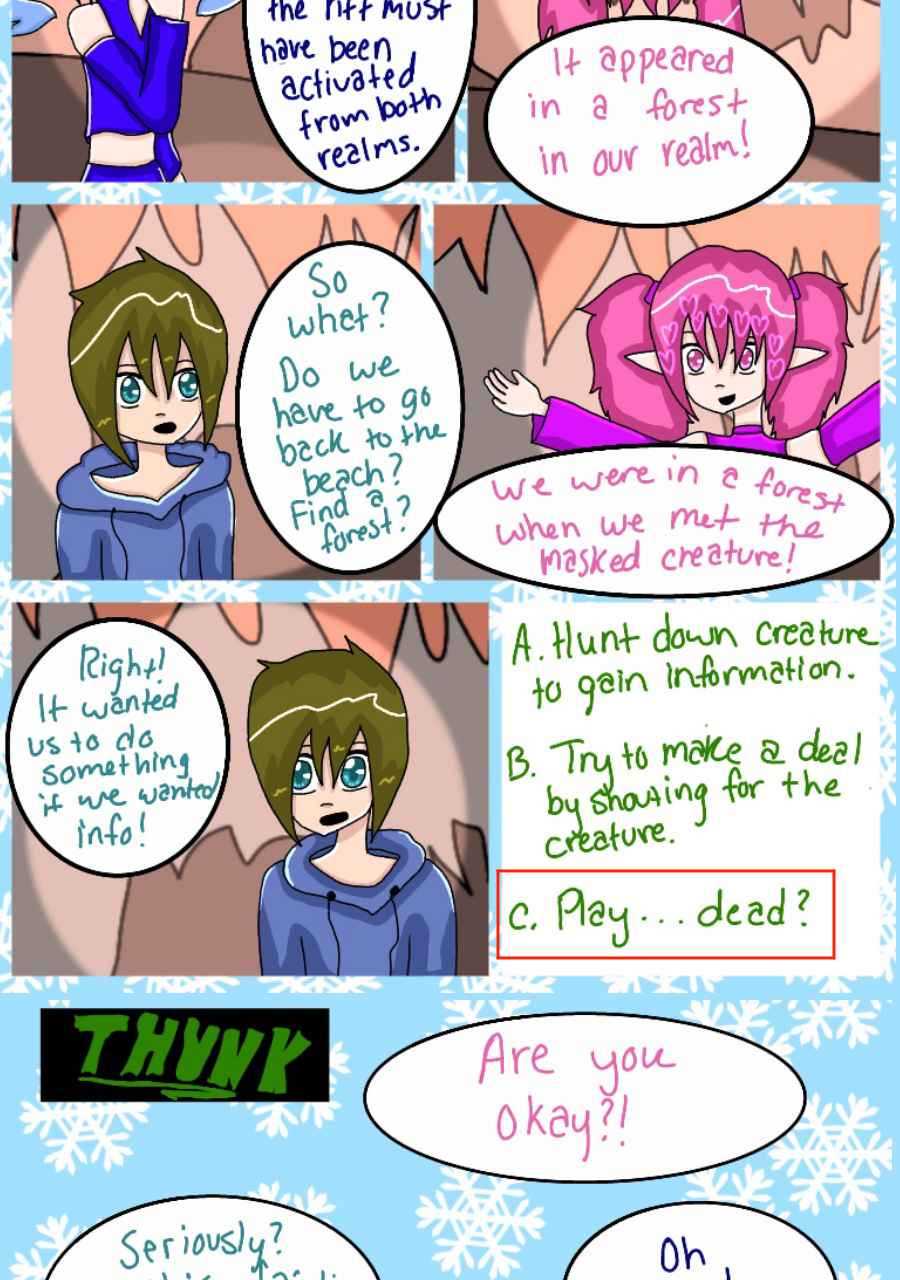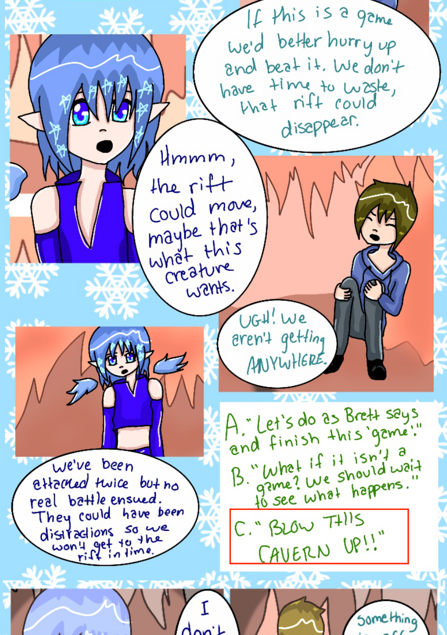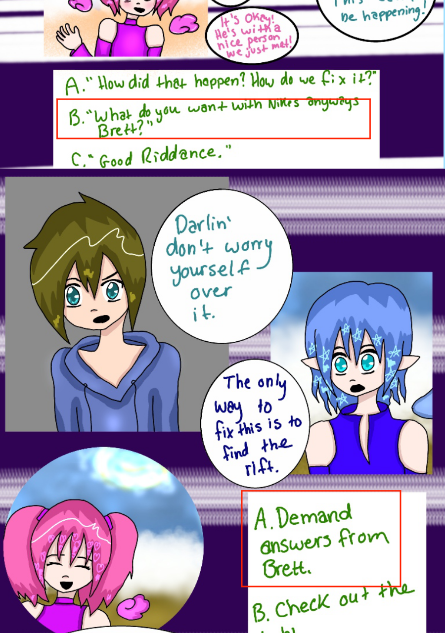 Continuation of a comic known as SabotageYC, previously known to be a 'choose your own adventure' comic on the site Paigeeworld, which has since shut down, but now has turned into a normal comic. These pages are placed here for readers to continue reading this comic as well view the beginning.