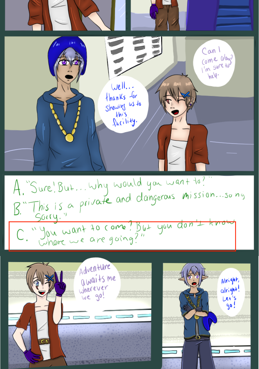 Continuation of a comic known as SabotageYC, previously known to be a 'choose your own adventure' comic on the site Paigeeworld, which has since shut down, but now has turned into a normal comic. These pages are placed here for readers to continue reading this comic as well view the beginning.
