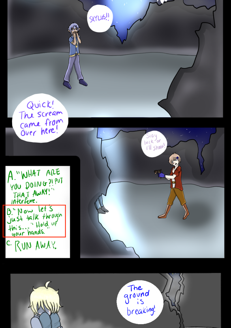 Continuation of a comic known as SabotageYC, previously known to be a 'choose your own adventure' comic on the site Paigeeworld, which has since shut down, but now has turned into a normal comic. These pages are placed here for readers to continue reading this comic as well view the beginning.