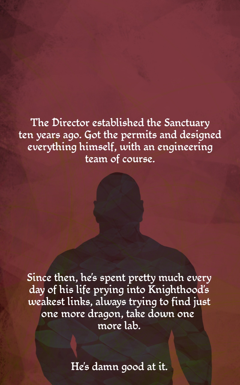 Damascus is the director of the Sanctuary — a facility that rehabilitates dragons that have been liberated from Knighthood. Knighthood believes that dragons are savage animals that must be eradicated. Damascus knows better. Dragons are beautiful, shy, intelligent, and, most importantly, they are people. Damascus can hear their telepathic conversations. And he is the only human on earth that can do so. Can he use this power to save them all?