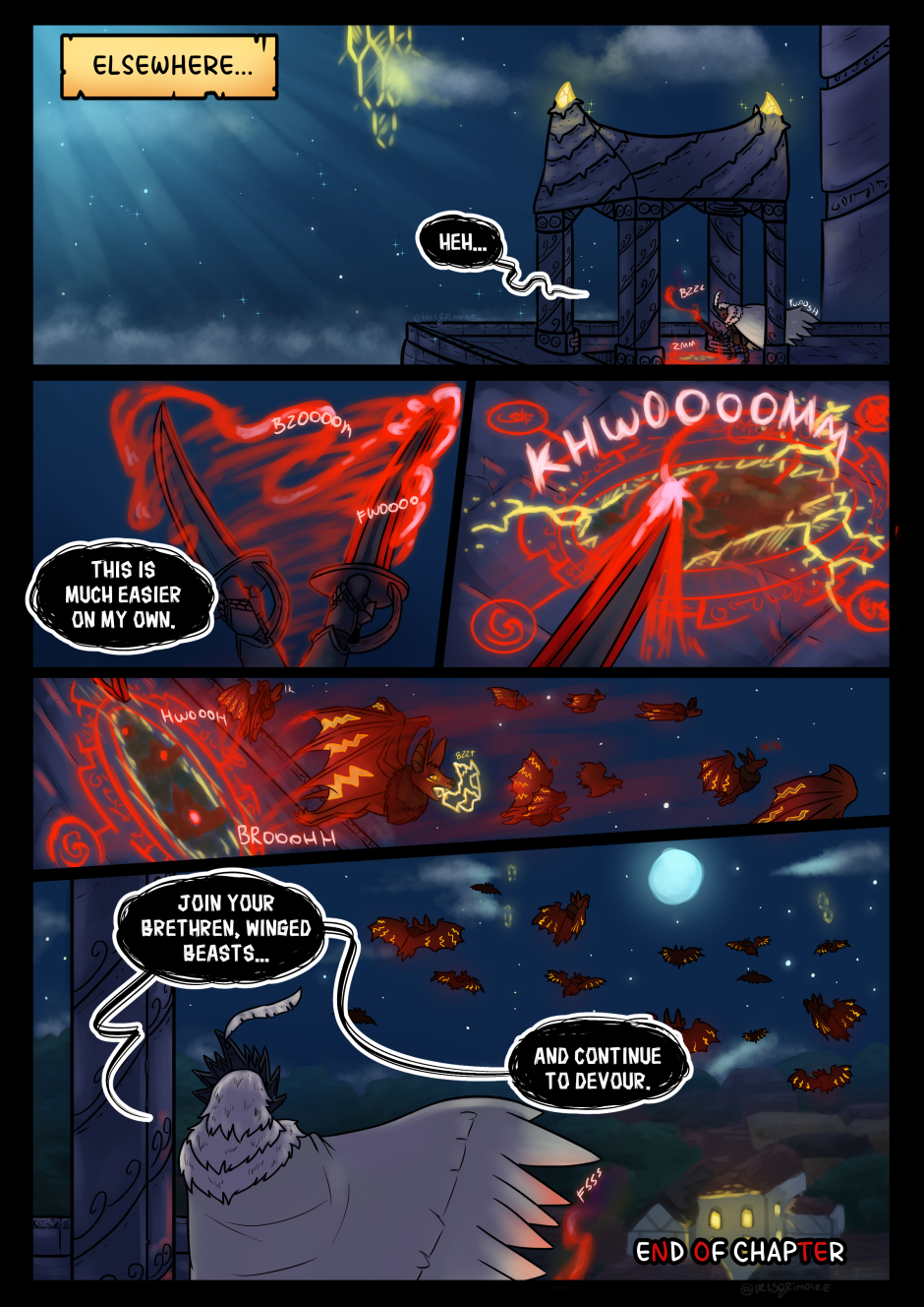 The bats weren't a normal occurrence! But who is this caped sorcerer...? Find out next time, in Splitting Image!
