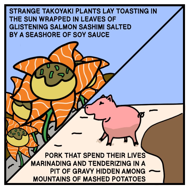 I wanted to try something new and make a Toriko like world but focusing more on the food than action. This comic series will be food ideas that I think of.