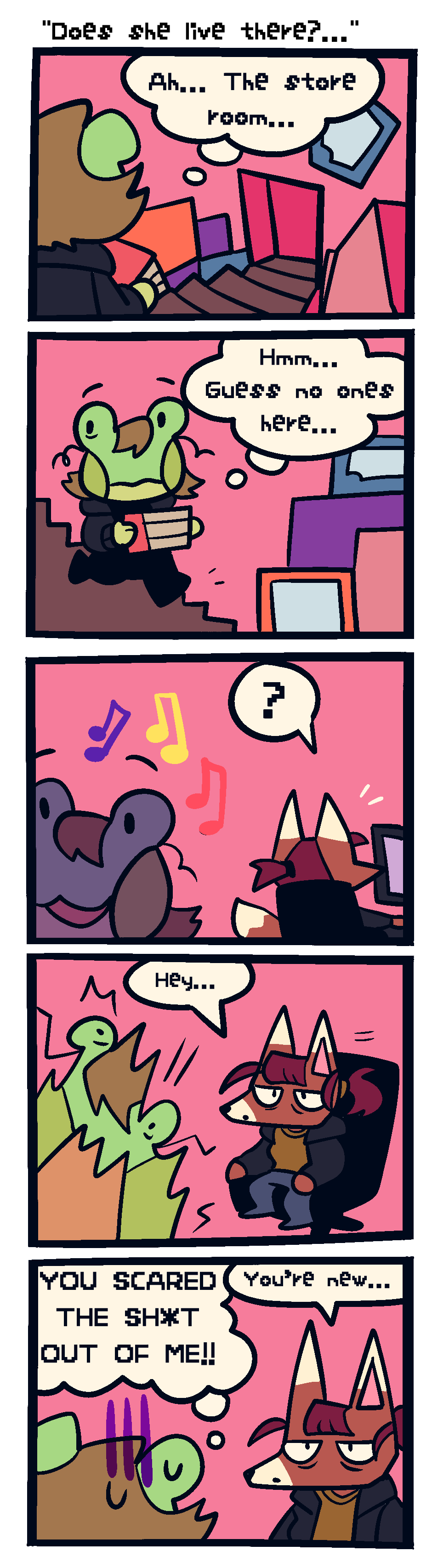 Follow my journey into working in retail! Getting along with co-workers, dealing with tricky customers, cleaning and helping out! The Frog Log shows me both at my best and my worst... Can this cute little frog survive the harsh world of working at a comicbook store? hopefully! (Co-workers are named after/modeled after animals to protect their identity)