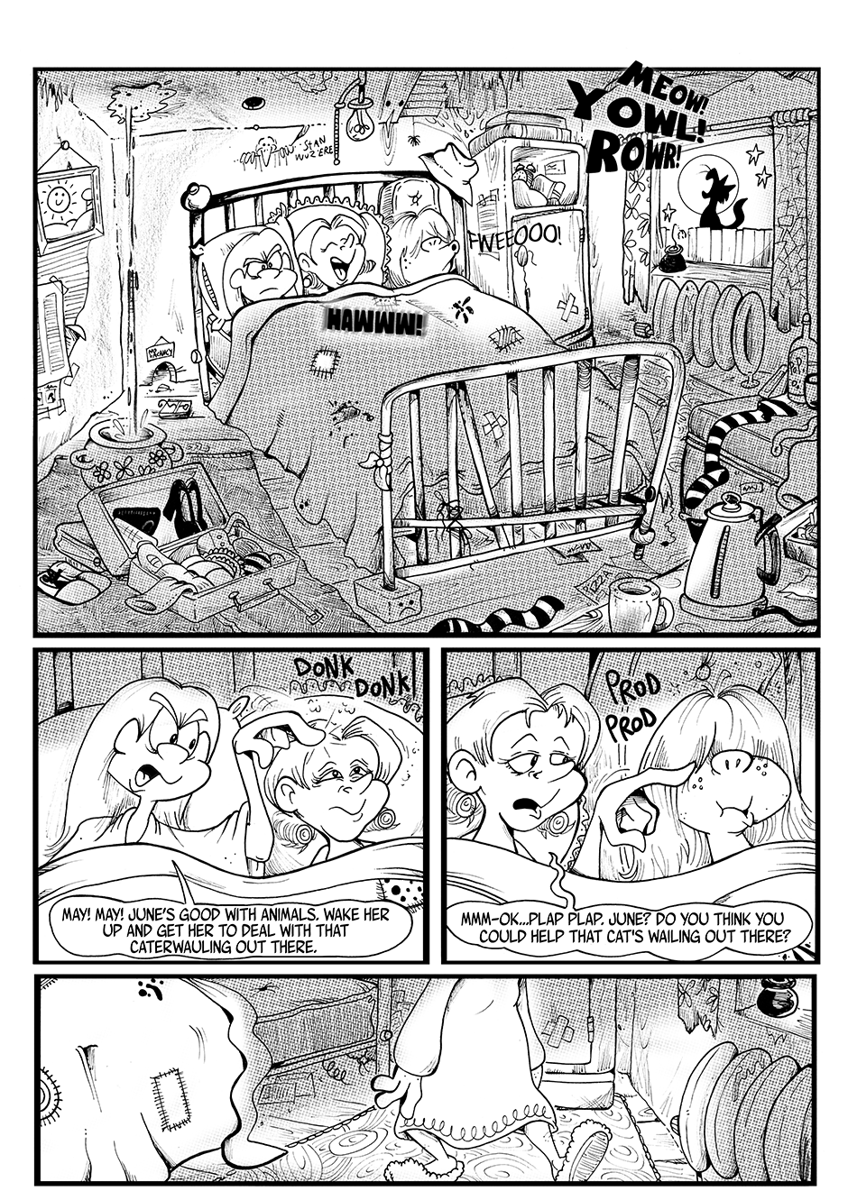Impressive job on the backgrounds here, especially the organised chaos that is the bedroom. I also spy some familiar feline faces too. ;)