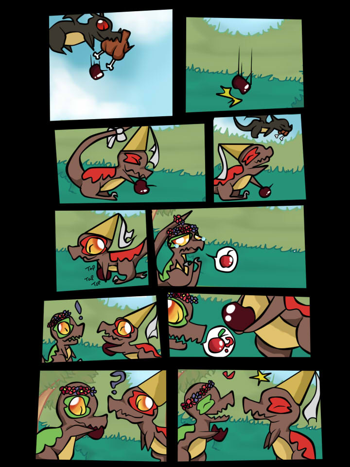 Drake sure knows how to cook a bird, and apple too. Schor-whoo red thanks Drake for his help and runs the apple back to schor-whoo green. Schor-whoo green has never seen a cooked apple before so she gives it a try and she likes it!