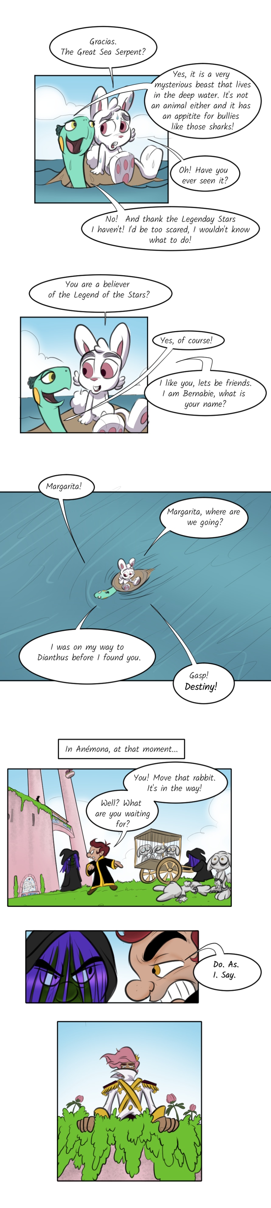 Bernabie the rabbit faithfully believes Prince Edwìn of Anémona, a kingdom of lucky rabbits, is a hero of a legendary myth that is said to one day bring peace to many lands. But the prince has gone through a troubling change with the help of the royal wizard, Sebastian bringing chaos to the once fairytale land! Bernabie escapes and seeks out two rival leaders, believing that they could also be the other heroes from the legend-- Fearless Queen Beatrixe of the Jormungand Kin and warlord, Blackie Chan of the Glaring Clan.