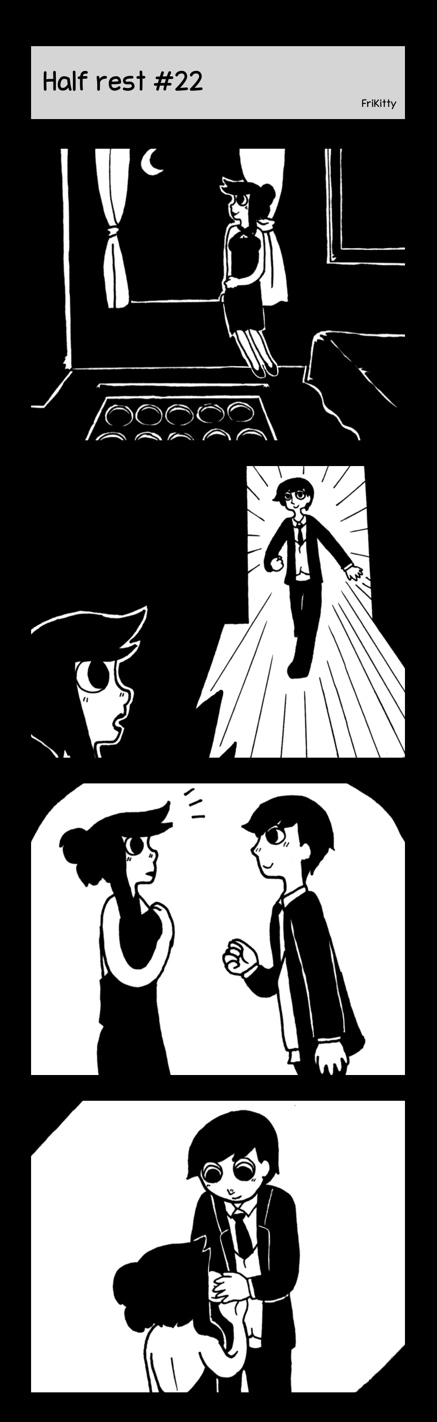 It's night-time and the main character wears a really beautiful dress.