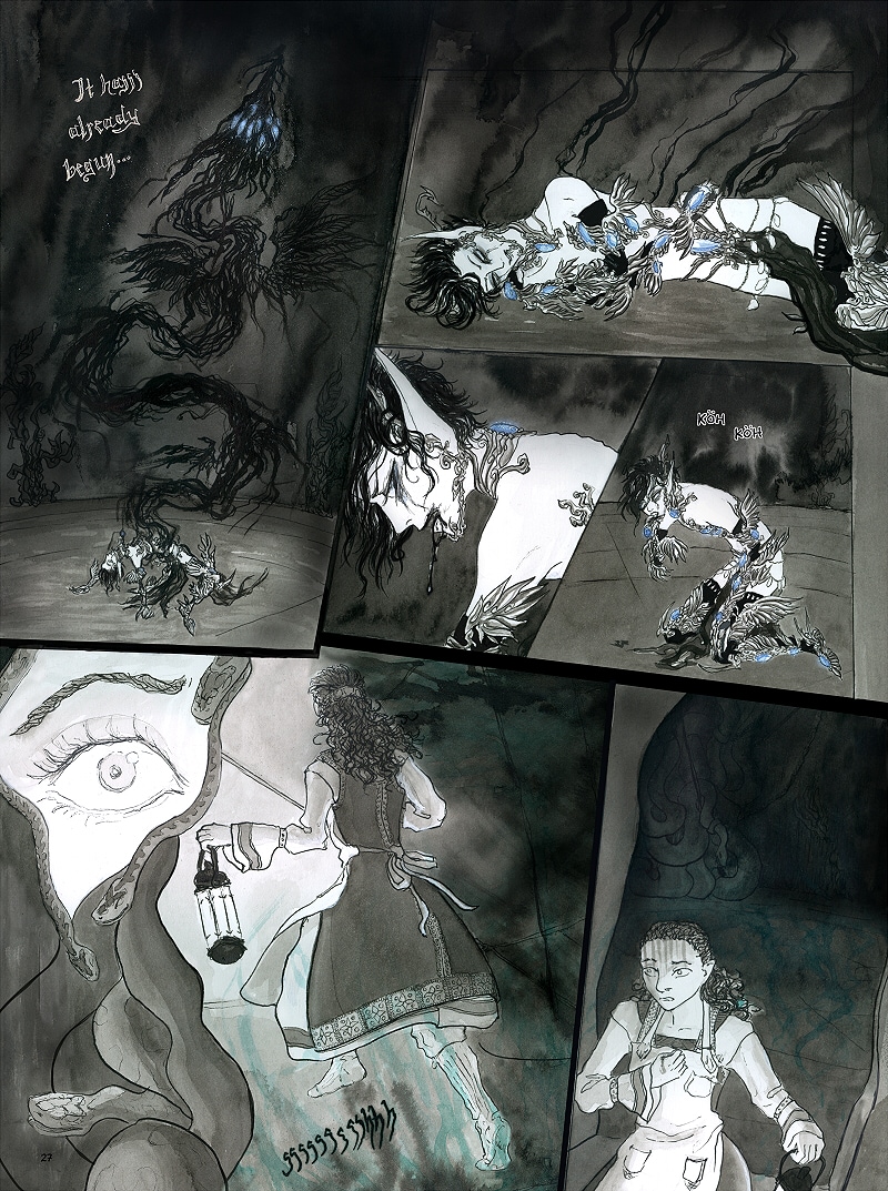 AND HEY: I participated in the online Zine Fest of Helsinki comics festival recently and my friend made a 10 page, full spread pdf sample of the first 10 pages of Paths of Avarnight.