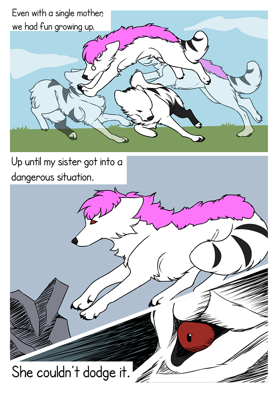 The comic follows the story of a young wolf called Black Jack. After his father leaves them and his sister is getting more and more attention, sour feelings start to boil in him. That's when a pack of rebels decide to settle down on their territory. Will he chase them away and continue his bitter but normal life, or will he try to join the pack?
