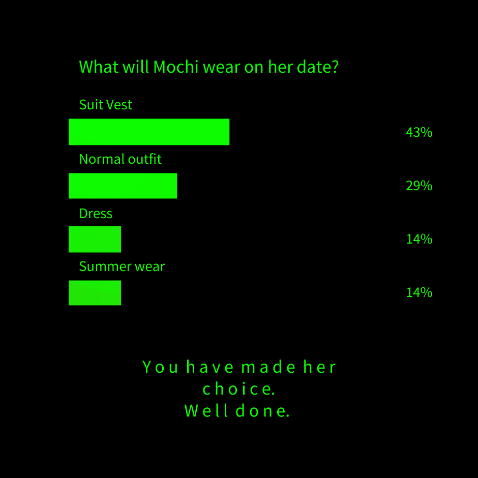 I am proud, you made her choice. Stick around to see how your choice takes affect Twitter:https://twitter.com/PhoebePlague Ko-fi:https://ko-fi.com/phoebeplague