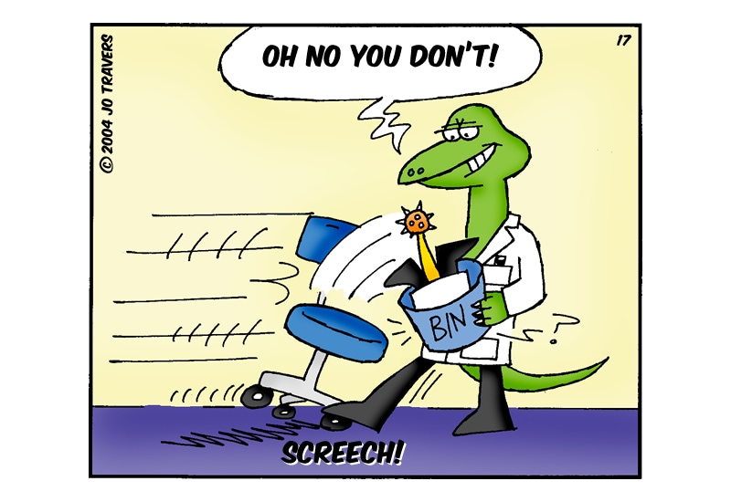 Three lab-coat wearing dinosaurs, a confusing Russian brother and a know-it-all lab rat... But that's not all, the Sales Manager's a Tyrannosaurus Rex...