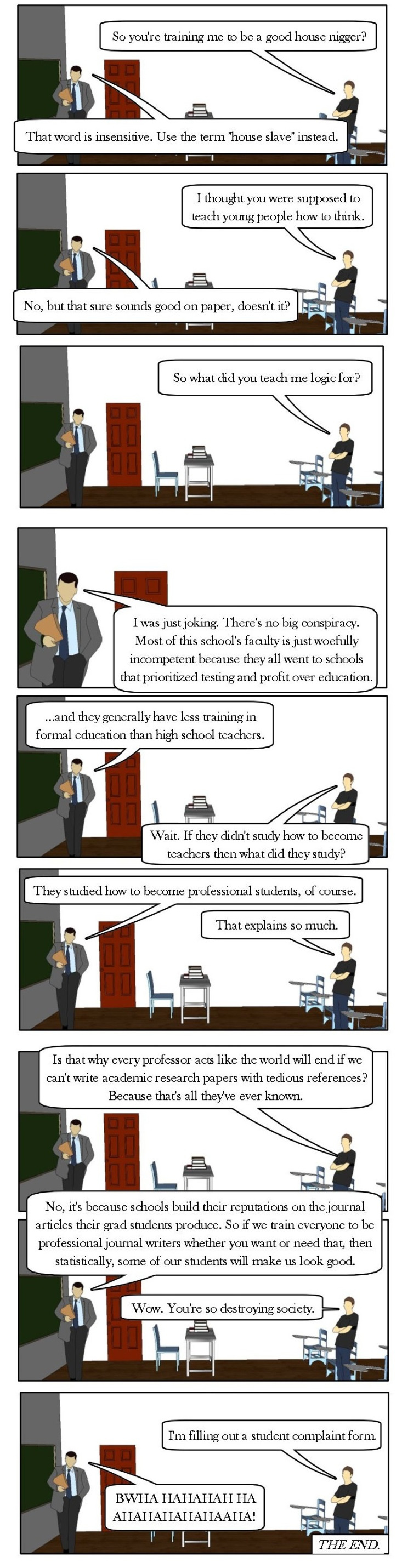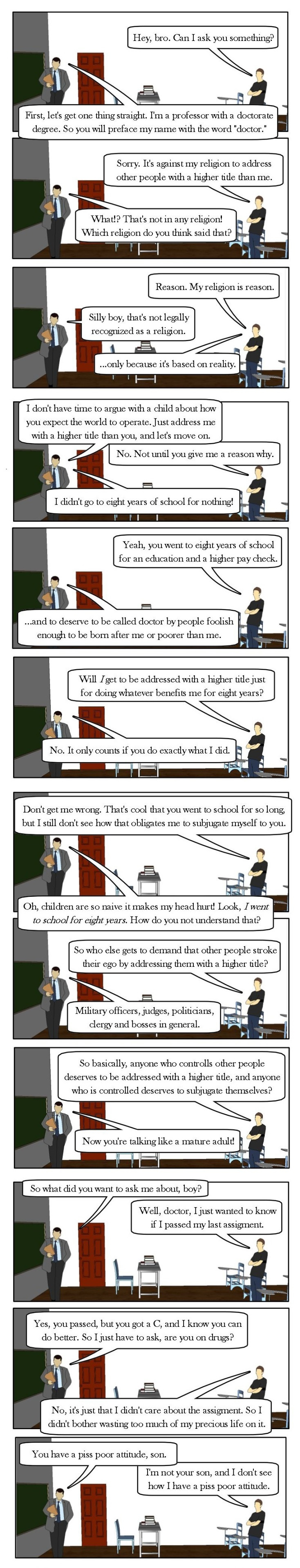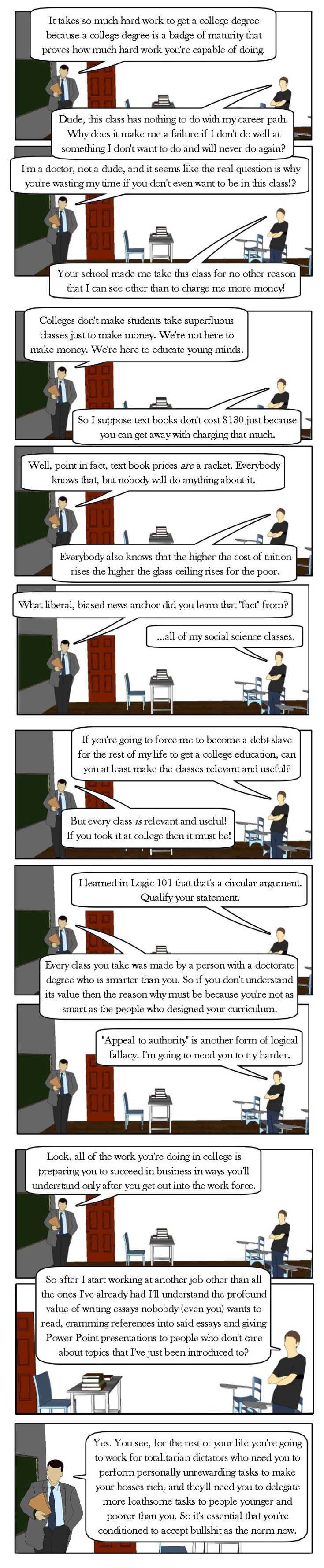 A college student learns how universities work.