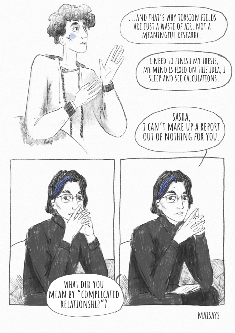 In this comic there will be a lot of aesthetics of post-Soviet cities, references to books and films. There will be amateur arguments about philosophy and warm and comfortable conversations.