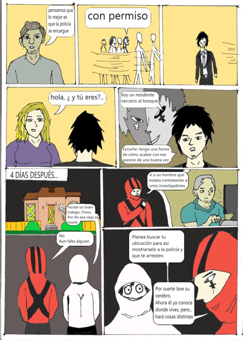 Mi webcomic trata sobre un grupo de 4 jovenes que trataran de resolver misterios que se relacionen con casos de morbo y terror. Entre ellos irán descubriendo rituales y personajes oscuros como los conocidos creepypastas. Acompañen a los Investigadores en descubrir este mundo que posee muchas hechos misteriosas que irán tomando forma en base avance la serie.