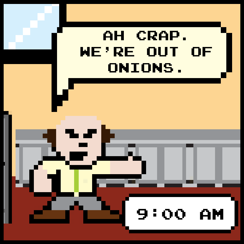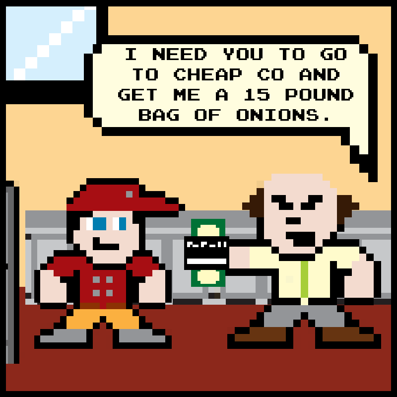 Ed runs out of onions and sends Steve and Dennis on a quest to Cheap Co!