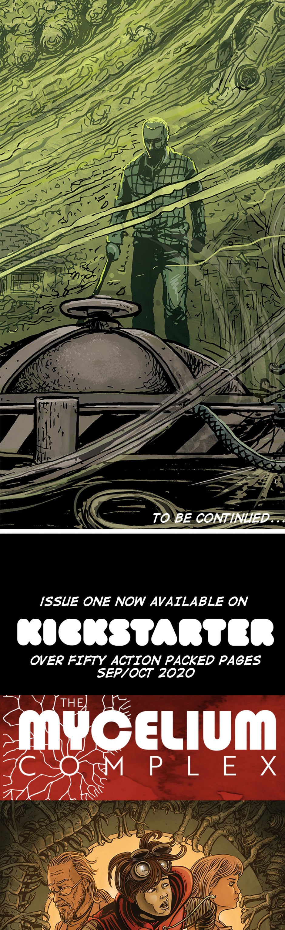 This is it! The end of the first story "The Beginning and the End of Everything". Thanks everyone who supported the comic and left your comments, I read every single one. The 53 page comic launches today on Kickstarter. If I raise enough money to get a print run done you will see the comic how it was intended. The Mycelium Complex will be back soon!