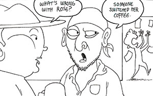 Someone has messed with Rose's regular caffeine fix in the morning. WATCH OUT EVERYONE!!!