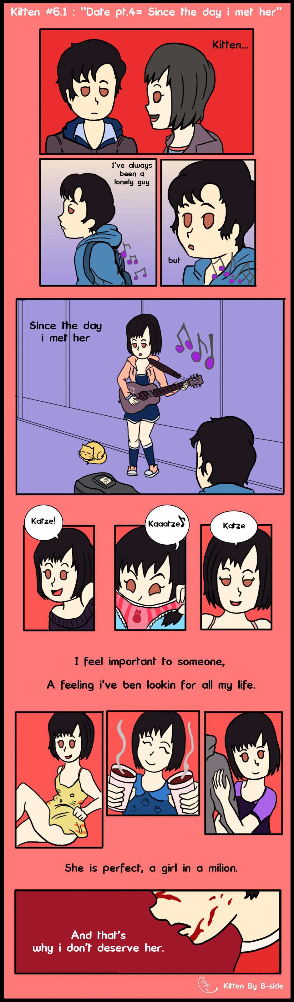Katze is a low profile boy who nobody listen to, and he meet Kitten, a young girl helplessly in love with him. Katze is affraid of relationships but Kitten never gives up, and she continues using her "unusual" methods to convince him to be her boyfriend.