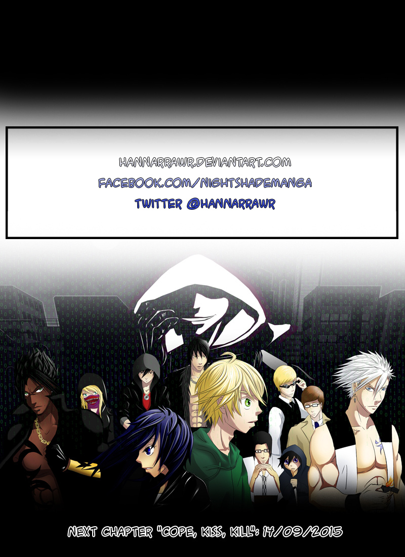 Nightshade is a shonen-mystery-style series, full of twists & turns with a light-hearted comedy side to contrast! The story is kicked into action by Oliver Sloane as he sets out to uncover the identity of the deadly anonymous hacker known as "Nightshade". Uptown-resident Oliver recruits his Downtown friend "Bella" and ventures out to meet with an established team committed to the unmasking of Nightshade. There'll be a new chapter every MONDAY!