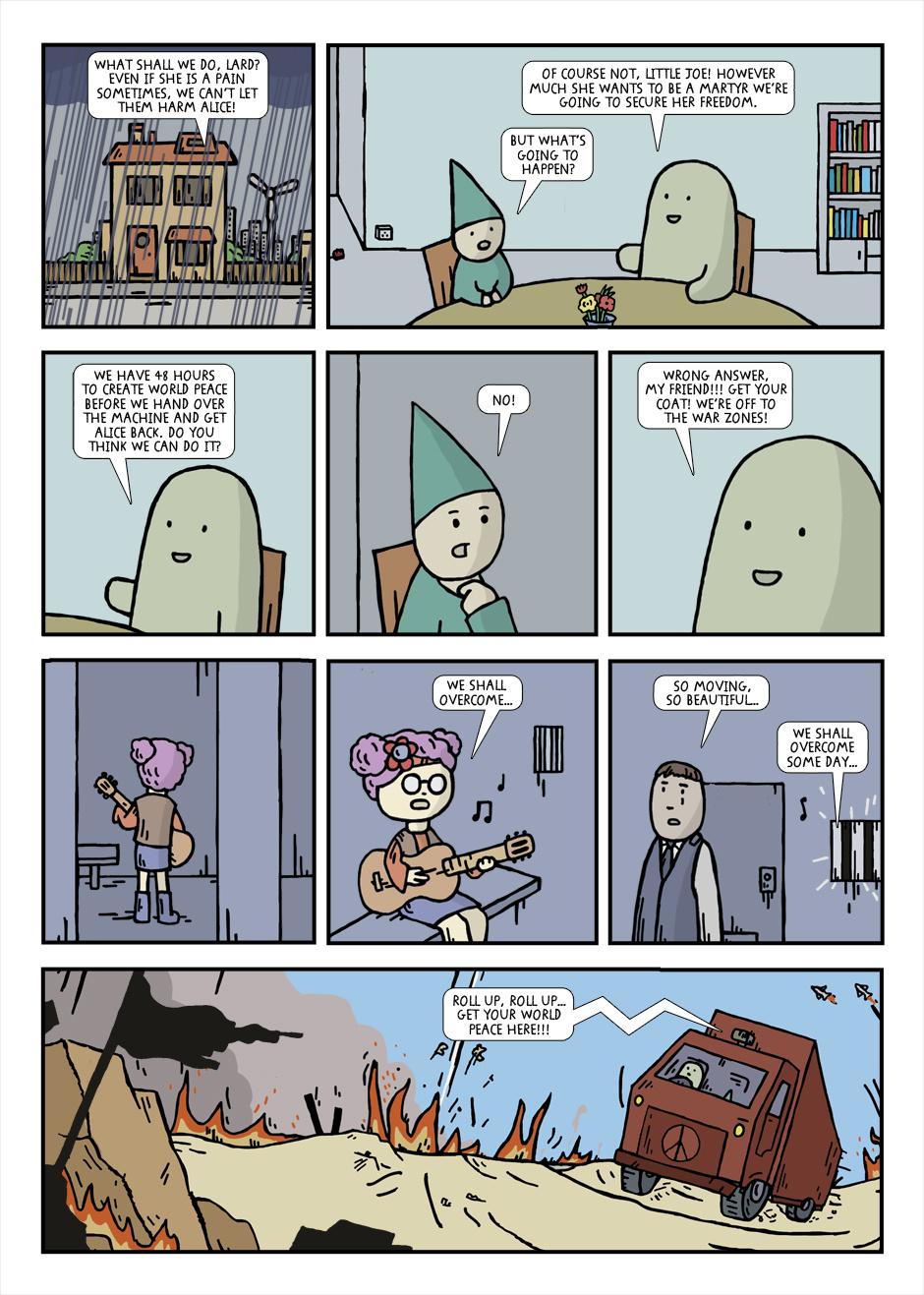 When Lard can't take all the tragic events that keep coming through the TV every night, he decides to take action. Surely Little Joe can build a machine to create world peace!? But when Alice becomes the first human to try the machine, things get seriously out of hand. This thrilling story sees Lard confronting the very sources of power, before risking everything to create world peace. But will he succeed or will everything go horribly, weirdly, comically wrong...?