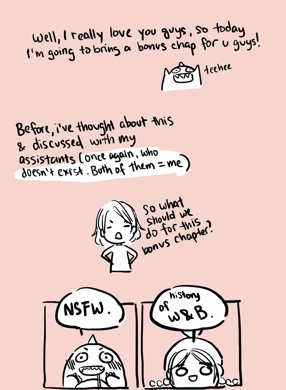 Thank you so much for you guys to have be with me until 250 subs! Here are some bonus chapter (i hope this is fun for you guys) to celebrate our subs!