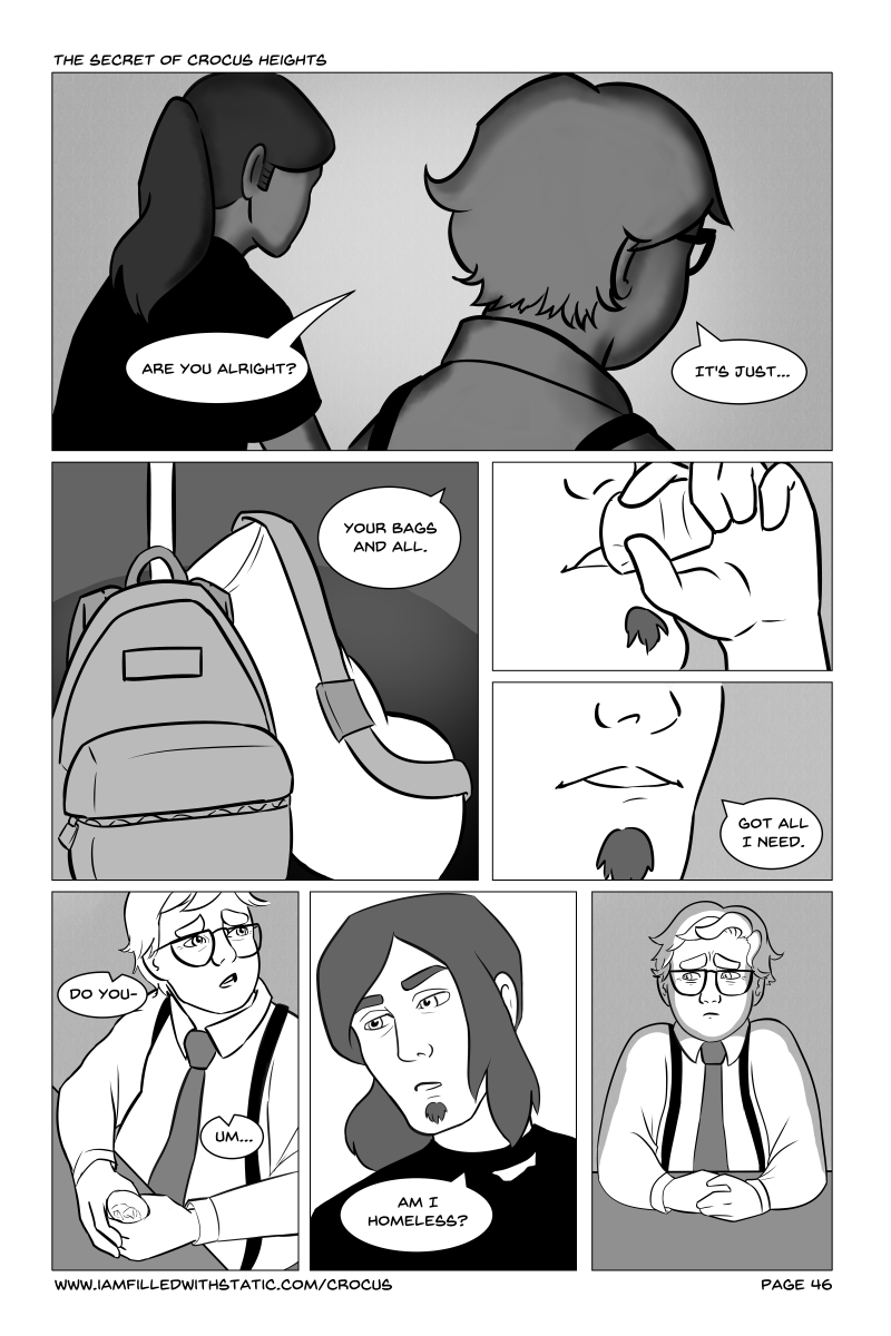 "The Secret of Crocus Heights" will guide you through the daily lives of some upstanding members of the community of Crocus Heights, and drag you through the horrifying mess that unfolds. Follow the paths of several characters dealing with quickly worsening circumstances brought on when Alayna finds an ominous curio while playing in the woods.