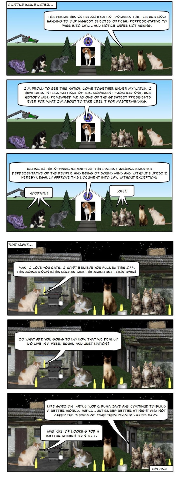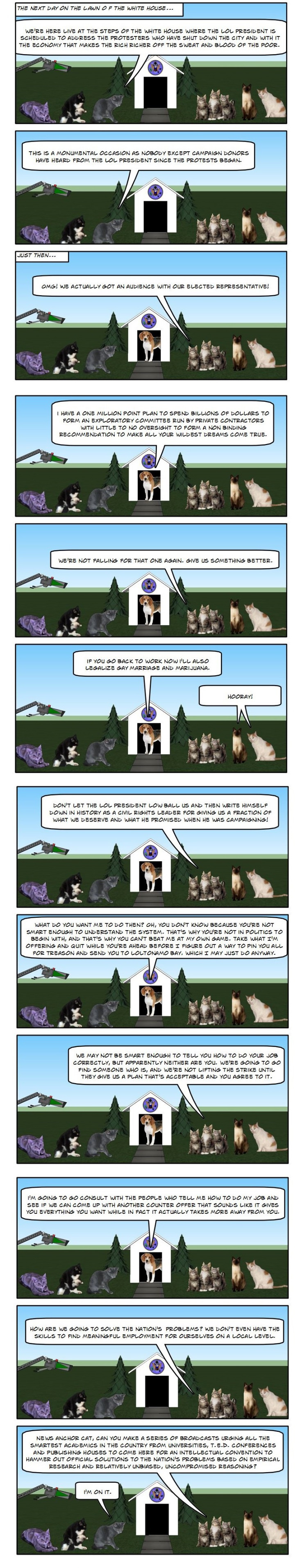 The LOL Cats try protesting economic inequality from the comfort of their front lawn. When that fails they decide it's time for a constitutional convention.