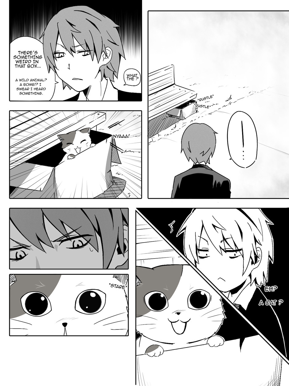 Shinji, a young man struggling with life's daily peers meets his match after encountering a stray cat on his way home from work. He rescues the cat from the rain with the intention of putting it back after the rain stops. But little does he know that the tiny feline might have actually saved him instead.