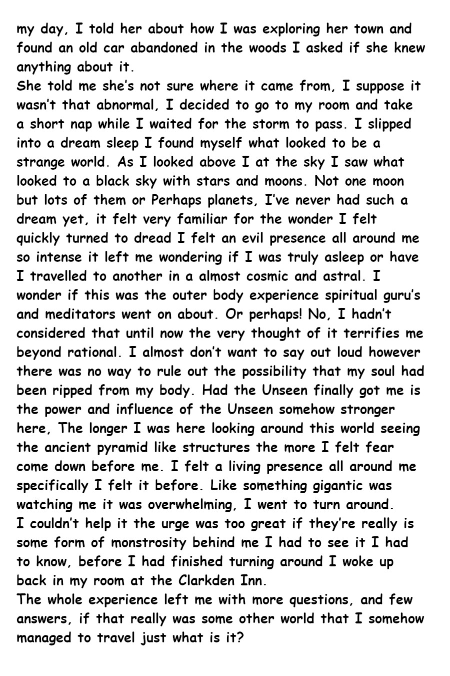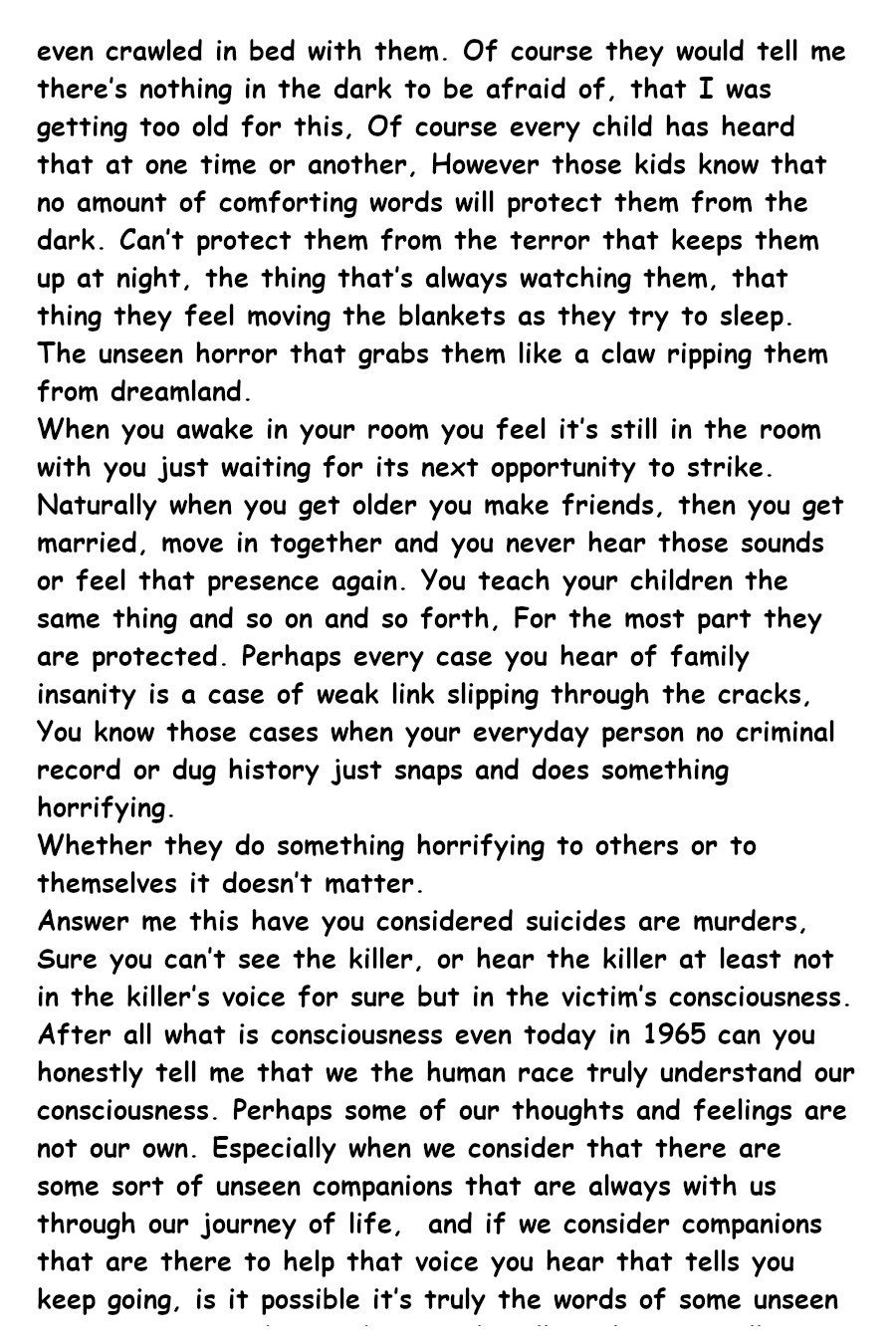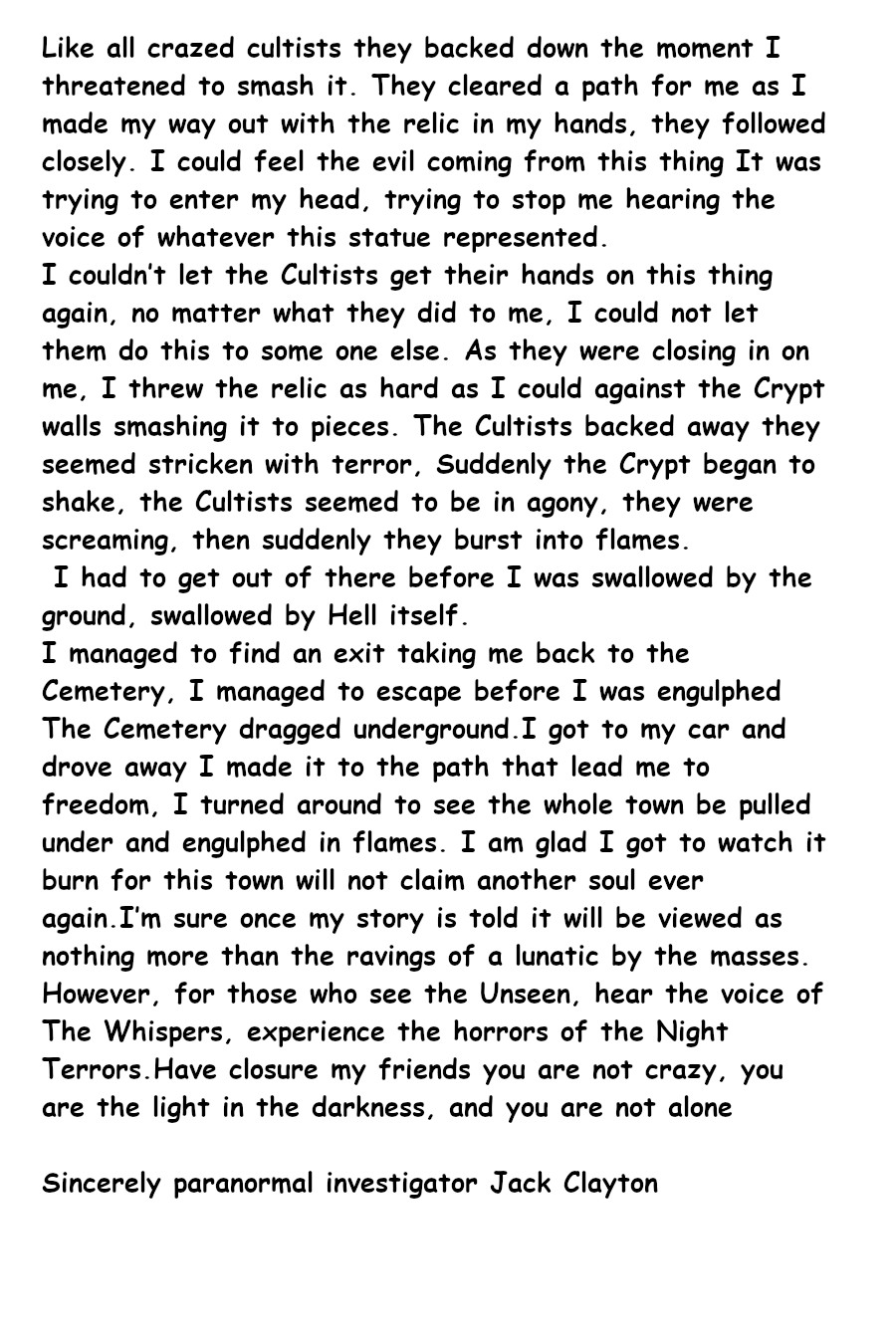 Have you ever heard voices in your head when you are all alone, have you ever felt there was someone in the room with you even though you couldn't see them, Hearing what sounded like strange movement, feel something pulling at your bed sheets when your alone in the dark. Jack Clayton is one of those individual and has dedicated his life to solving the mystery on what exactly lives in the dark and his obsession leads him into a world of trouble. can his wits get him out of trouble or will be the victim of certain doom.