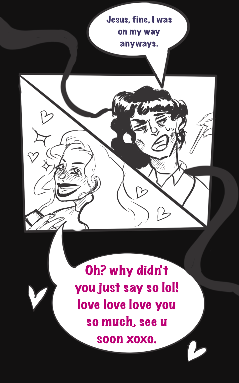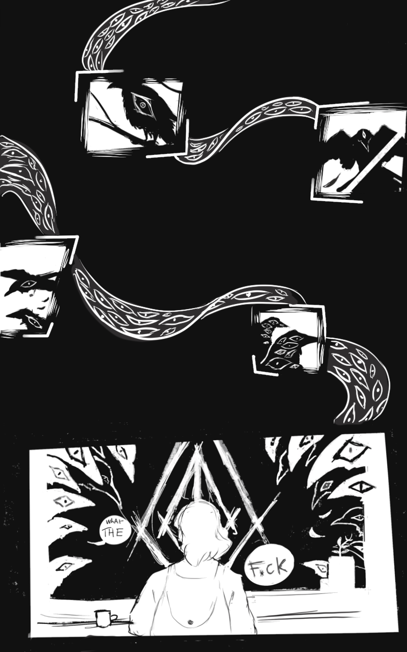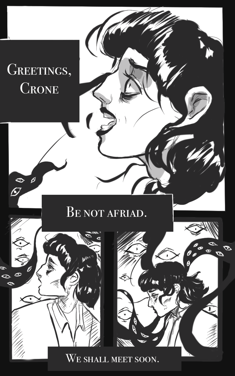 Crone never expected to be visited by a god of misfourtune, but here they are now, grappling with new and dangerous abilities. Bestowed upon them, a dark power that allows Crone to cast hexs. Can Crone, now thrust into a magic war between the gods, survive in this perilous world? Even with a disgustingly handsome man on their trail? Even with a budding curse triggered by their magic, threatening to overtake them? (This comic is LGBTQ+, and has no set release date)