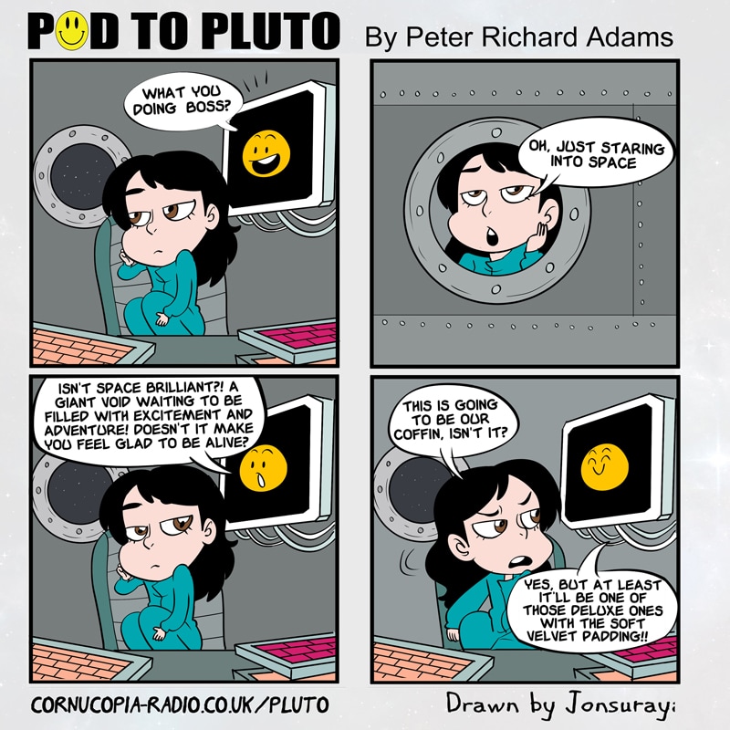 Welcome to our new ongoing scifi audiofiction sitcom series ‘Pod To Pluto’ and say hello to ‘Jemima Belafonte’ and her ‘Pod’ computer. As they both try and keep each other company during a very long 4.6 billion mile trip to Pluto!