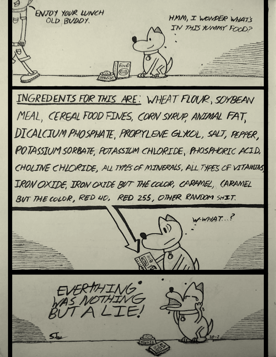 "Dog food for thought" He thought too much.