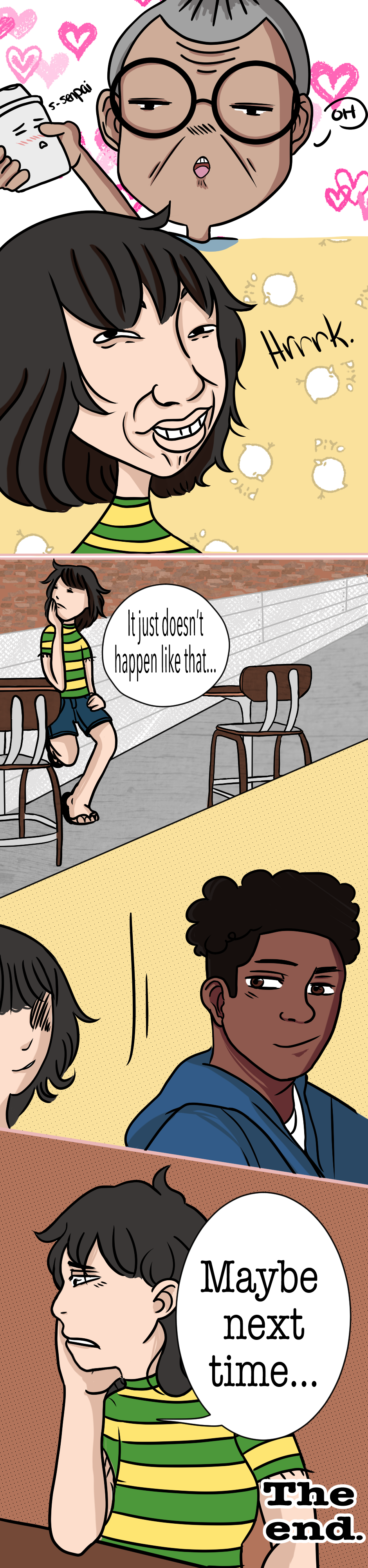 So I totally forgot the table legs in the first episode of the first panel, welcome to floating table cafe. I also just started to educate myself on perspective, so it looks bad. Man life is crazy.