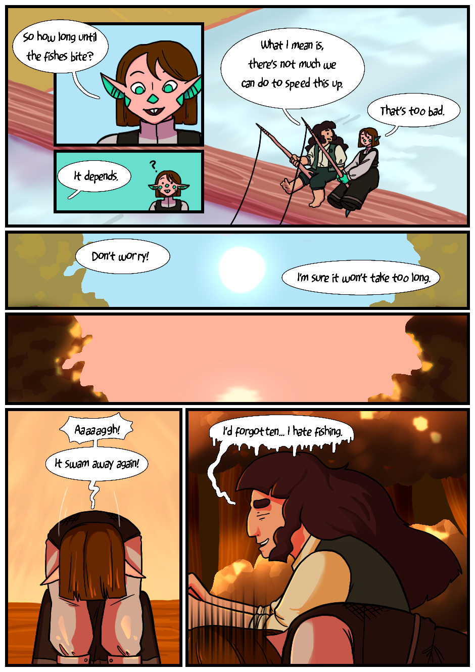 Ellie is an anxious girl who seemed perfectly normal until she was mysteriously afflicted with glittering green scales and large dragon tail. Her parents have done their best to slow this curse and hide their daughter from the world. However, they could never stop Jane, a rowdy child with big plans, from discovering this secret. Runaway Drakaina is the story of these two best friends running away together. While the journey is difficult, the two are determined to find a home of their own.