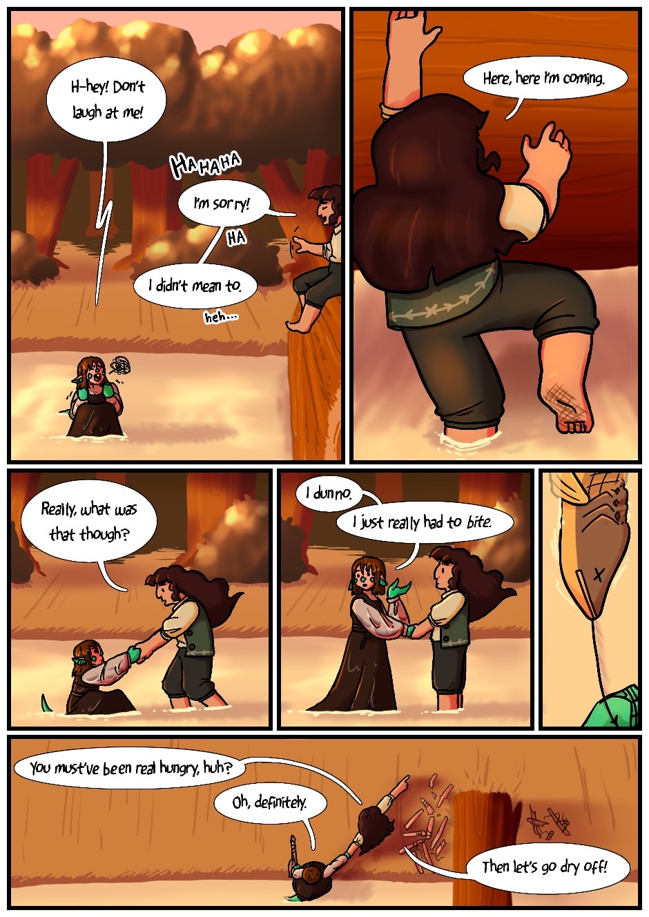 Ellie is an anxious girl who seemed perfectly normal until she was mysteriously afflicted with glittering green scales and large dragon tail. Her parents have done their best to slow this curse and hide their daughter from the world. However, they could never stop Jane, a rowdy child with big plans, from discovering this secret. Runaway Drakaina is the story of these two best friends running away together. While the journey is difficult, the two are determined to find a home of their own.