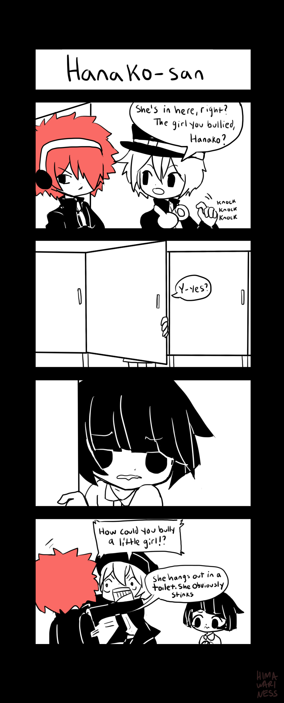 A spooky slapstick comic following the school life of students Mayonaka and Kakurenbo.