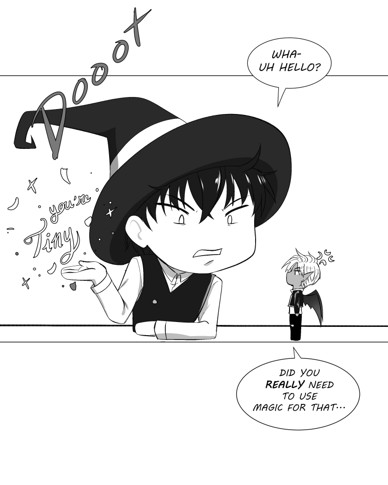 Lance, a small time witch, tests his magic by summoning a demon. Little did he know, Jin, the 7th strongest demon would appear! And tinny none the less! Now they must work together to correct Jin's size before there contract is finished or Lance wont be able to cash in his wish!