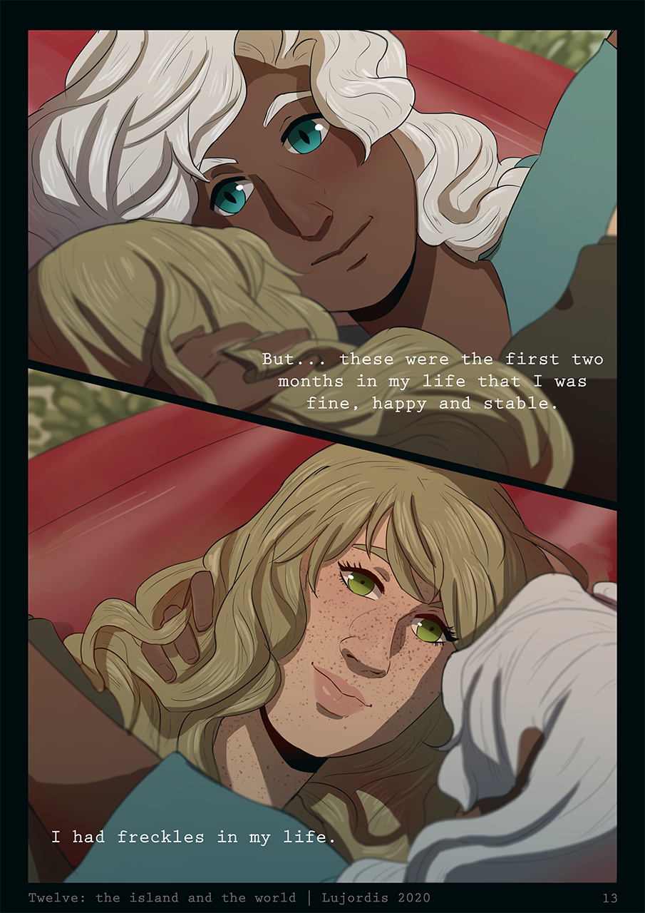 Twelve's lore, headworld, any original species on it and my universe are my own creations, private and closed. Please understand that I do not feel comfortable with anyone using it or creating for it; it took me a lot of courage to share this comic. Instead, I encourage you to create your own worlds and universes! Twelve and its lore are special for me. I'm doing this for fun, for my own enjoyment. I consider my headworlds a constant work in progress, as I write and draw what interests me for my characters. For now, this chapter will tell just a bit, but it is a bit that I worked on for a long time.