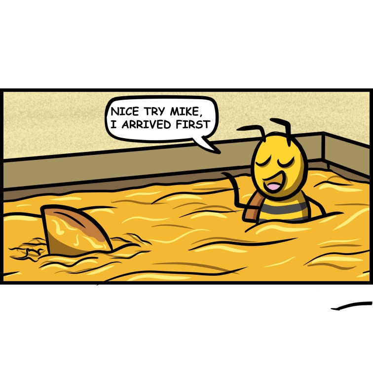 Bee going for a swim When a child I was always afraid not to touch the floor when swimming cause If I can´t touch it there could be something below me T.T Comictober Day 7 - Shark