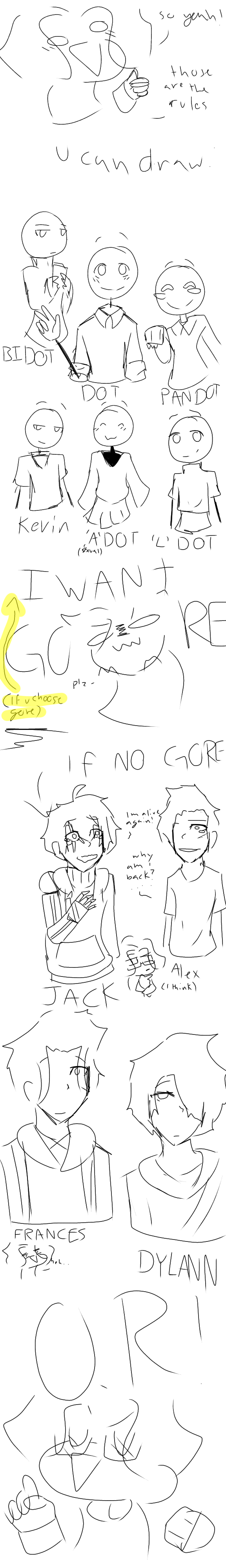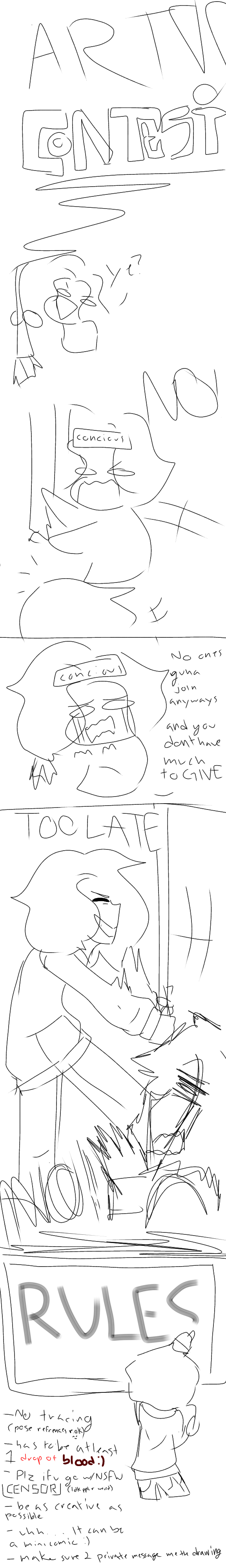 3rd: shoulder drawing of your own OC or someONE from any of my comics, pfp of your own OC, innocent lil mini comic