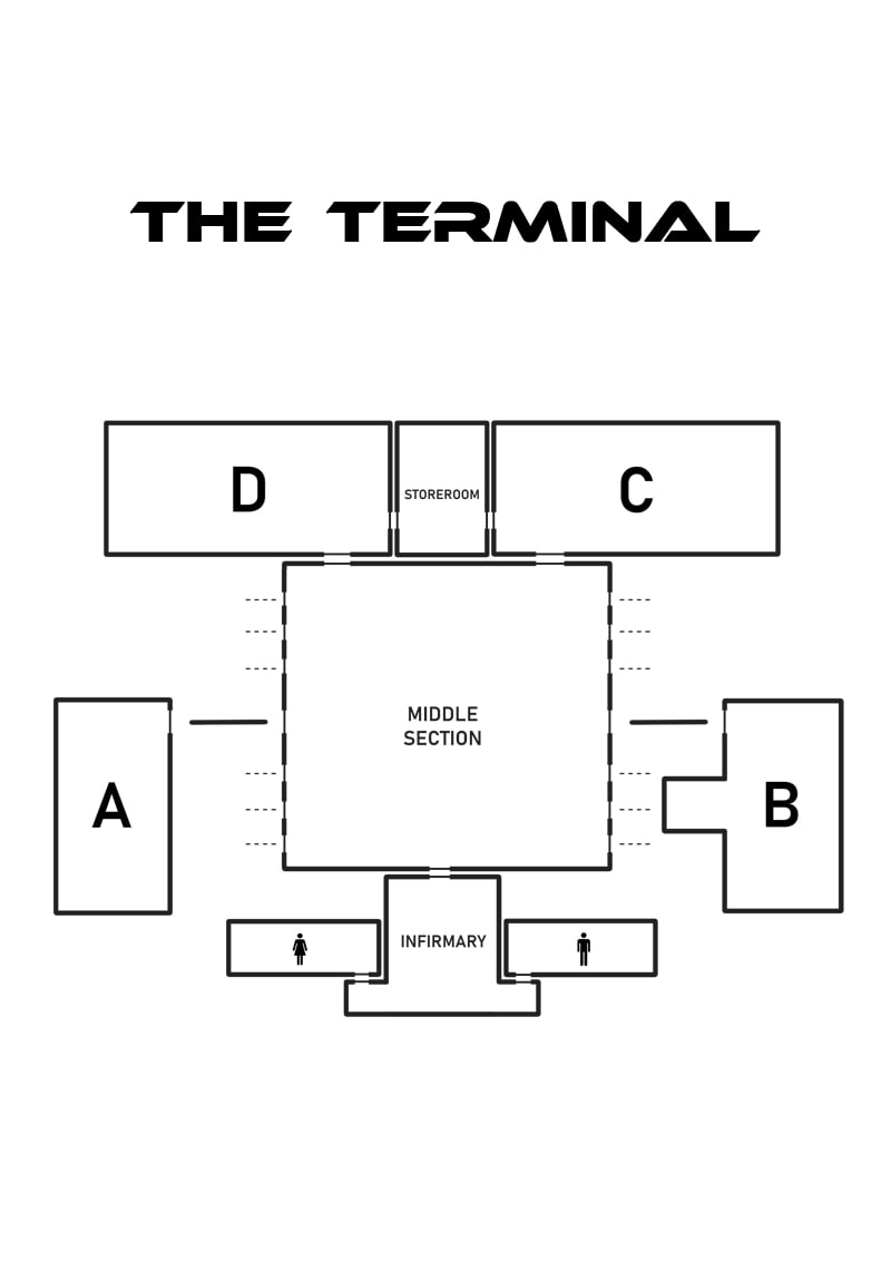 escape in the subway, instead of reaching his destination, he wakes up in "The Terminal" where he's forced to take
