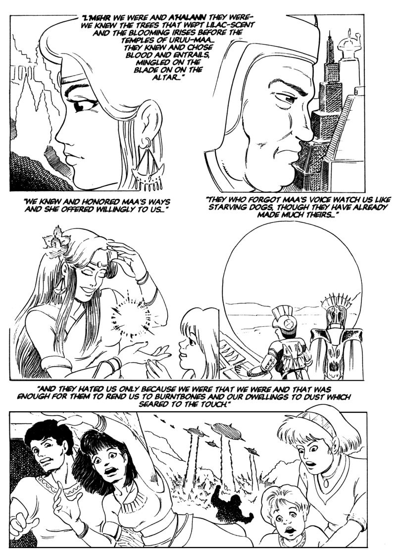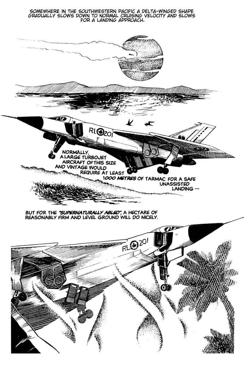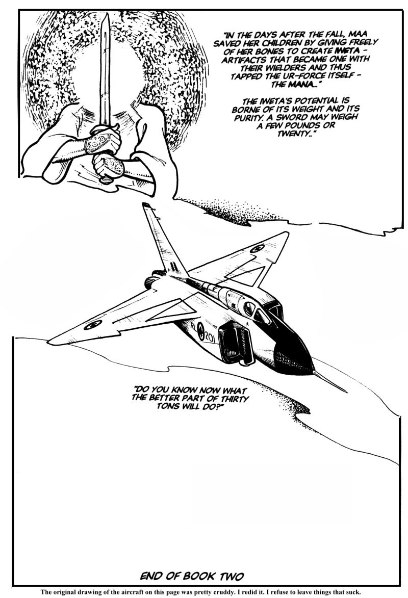 To paraphrase the classic Stealers Wheel song, there are clowns to the left, jokers to the right... and a girl from a screwed-up alternate future and a magically awakened fighter jet from Canada's past are stuck in the middle with... each other. "Hilarity", of course ensues. Originally a low-run print 'zine in the early 90's, hence some dated references and big hair.