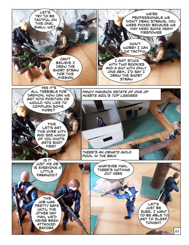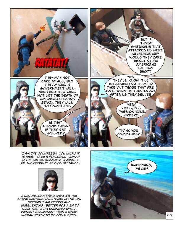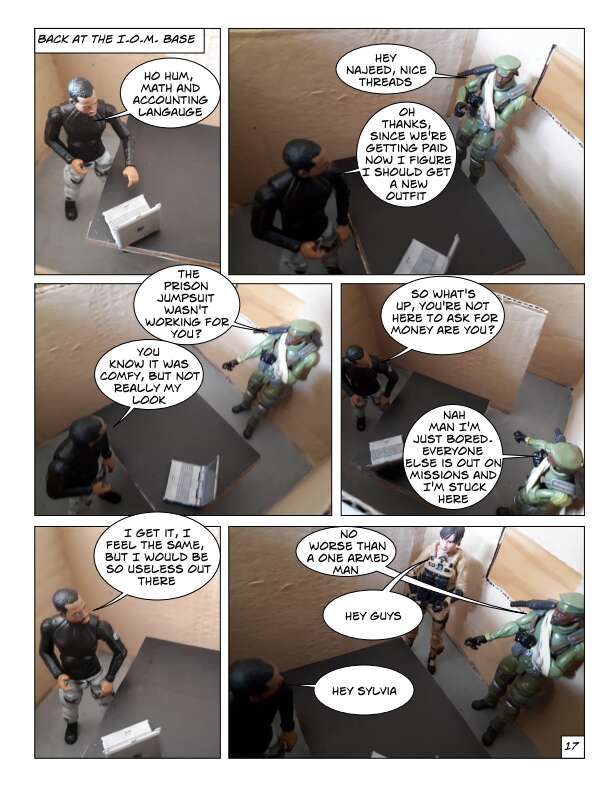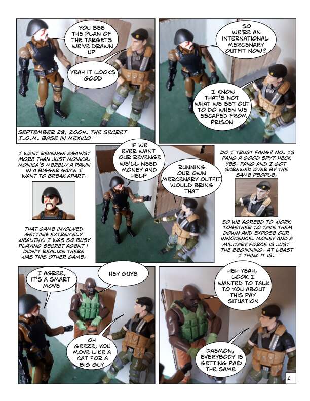 In Volume One of the IOM, prisoners escape from a secret CIA prison in Texas over the border into Mexico. This motley collection of prisoners are a mixture of former soldiers, intelligence agents and civilians who had been imprisoned for knowing something they shouldn’t. They know their freedom won’t be easy and sell their talents to the Mexican government, which wants them to secretly take down certain drug cartels by force. From there they start to form the beginnings of the International Organization for Mercenaries.