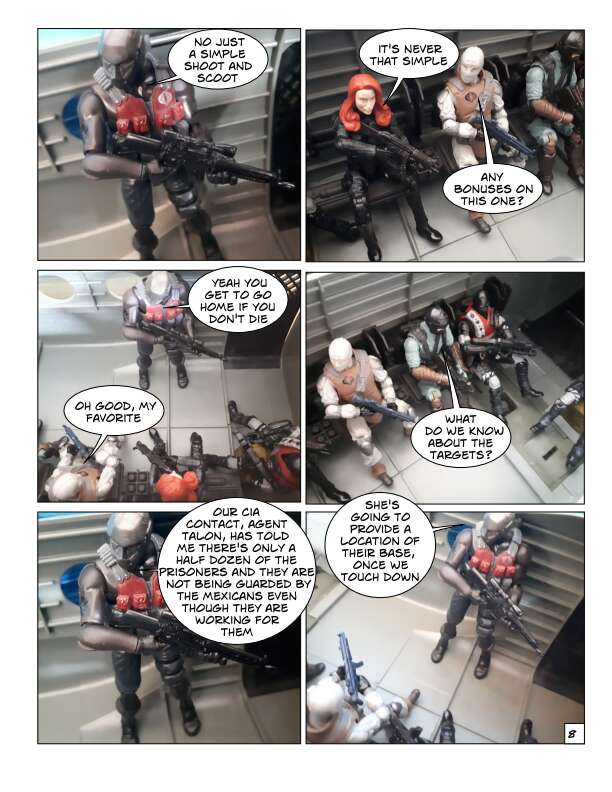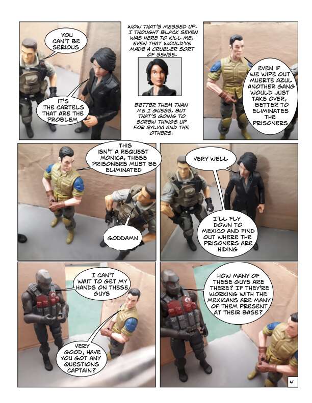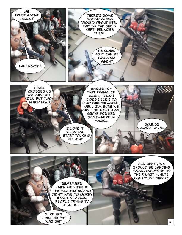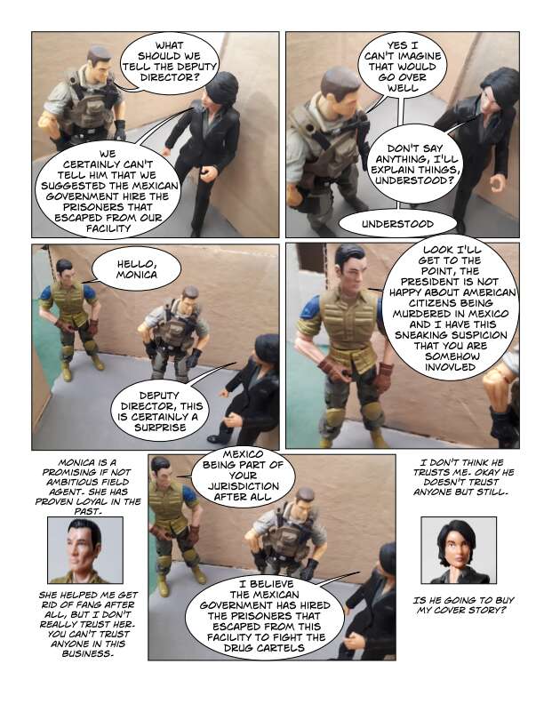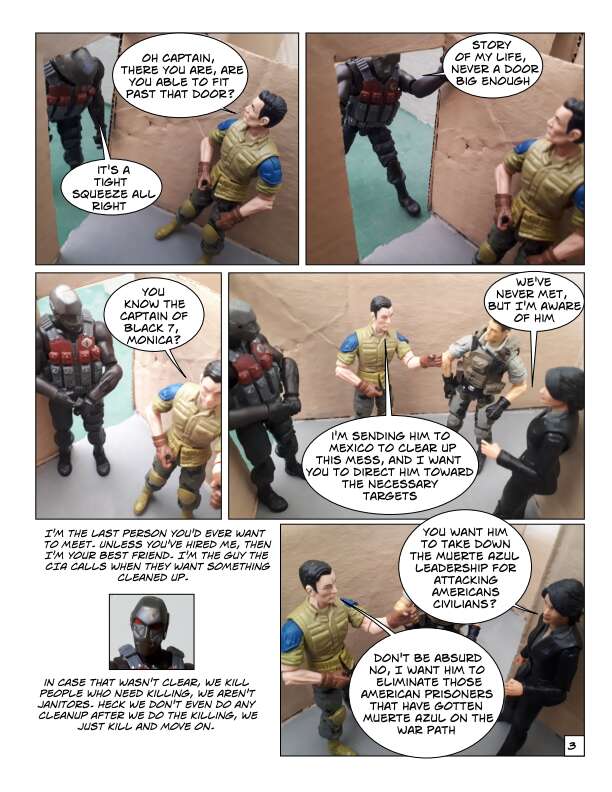 In Volume One of the IOM, prisoners escape from a secret CIA prison in Texas over the border into Mexico. This motley collection of prisoners are a mixture of former soldiers, intelligence agents and civilians who had been imprisoned for knowing something they shouldn’t. They know their freedom won’t be easy and sell their talents to the Mexican government, which wants them to secretly take down certain drug cartels by force. From there they start to form the beginnings of the International Organization for Mercenaries.
